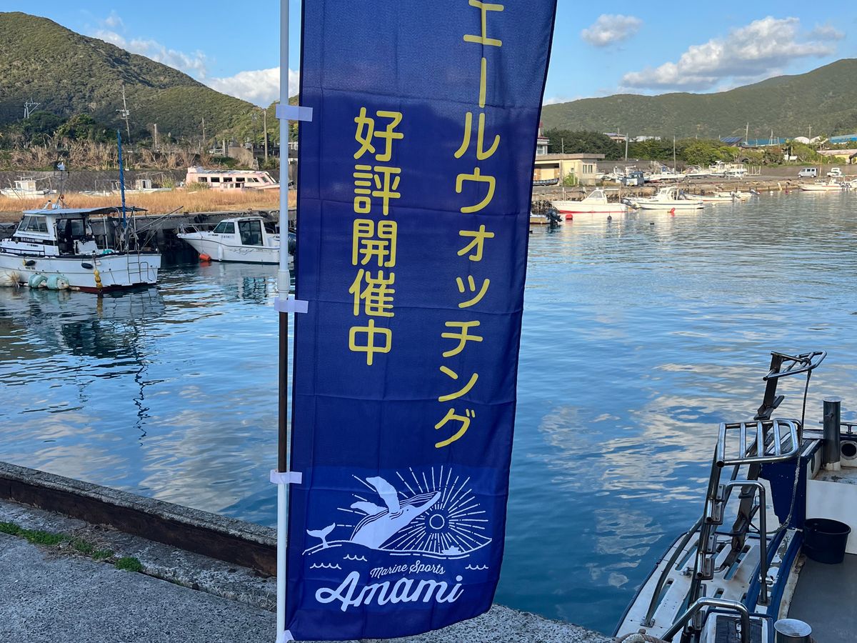 バウチャーで一番下のとこに小湊港だと書いてあってやべ前日確認しといて良かったと思った、てっきり名瀬だと思ってたから。それは置いといて、とにかくしばらくクジラの気配が無くて諦め掛けてたところにブロー(潮吹き)のスタッフの声そしてクジラ、尾っぽバンバン叩くアクション大興奮でした、見れてラッキー。おすすめです