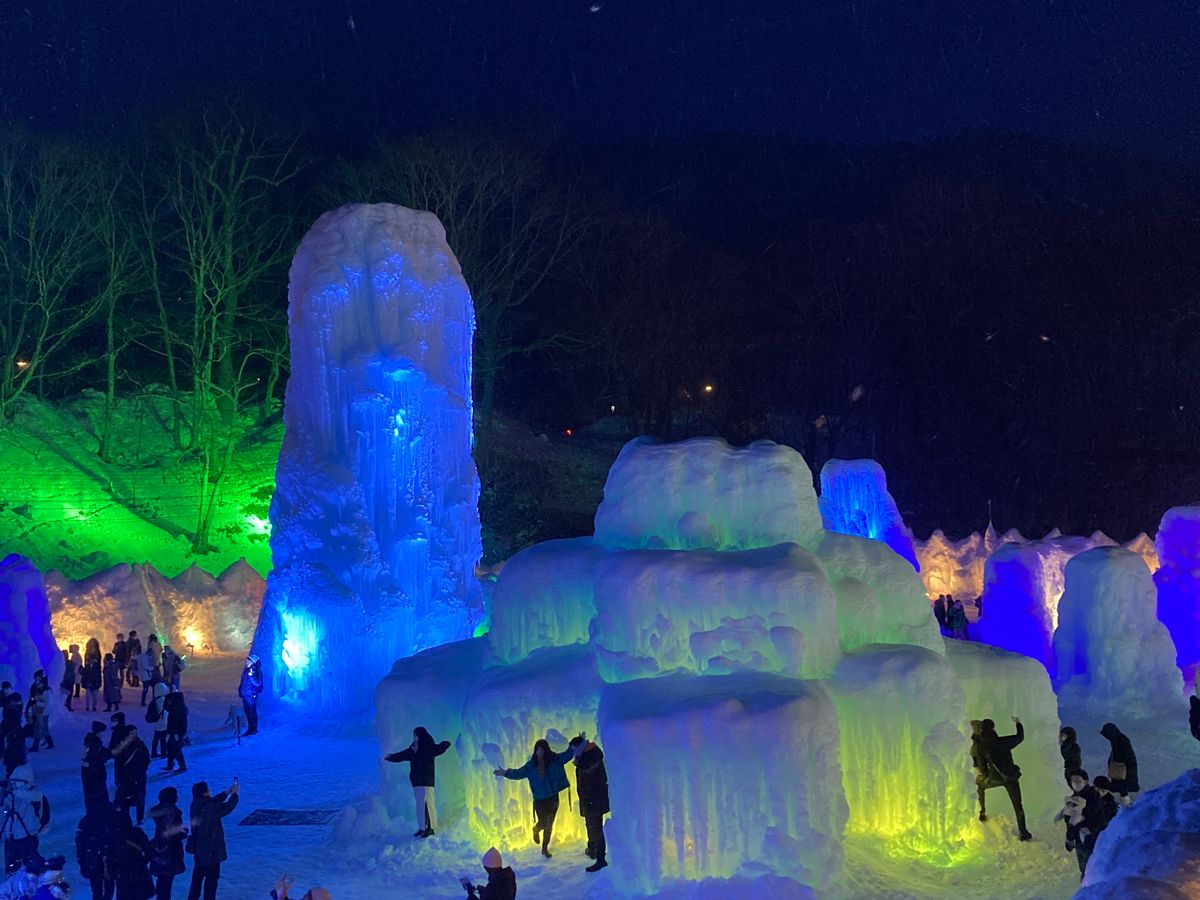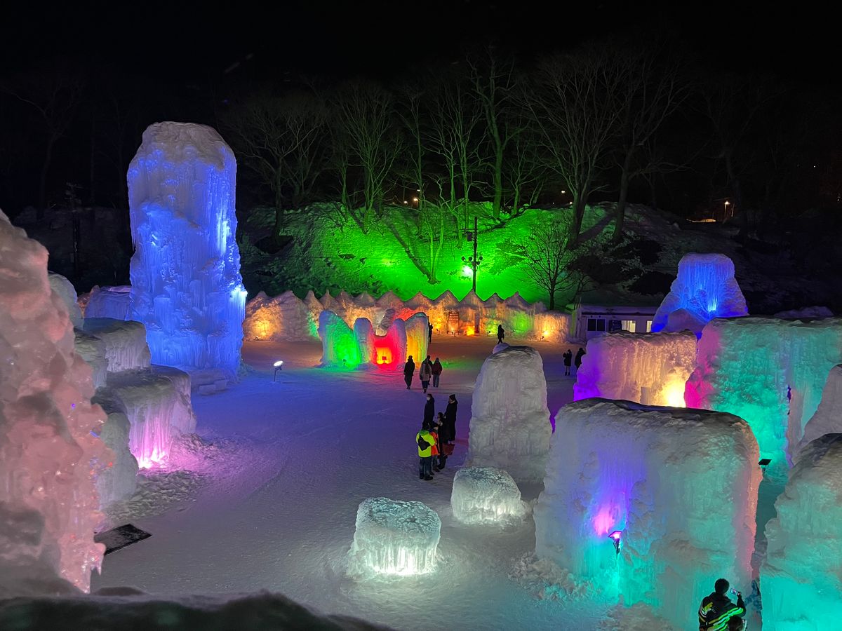 ライトアップはとても綺麗で幻想的で、雪まつりとは違った趣がありました。
