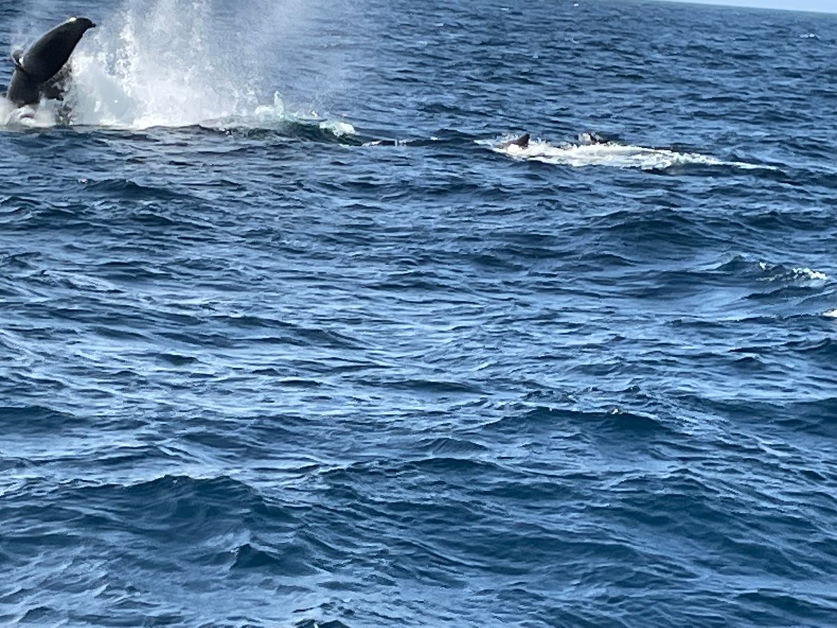 鯨と複数回並走でき、小鯨が尾びれで海面を叩く姿も見れました。こんなに見れるとは思いませんでした。楽しめました。