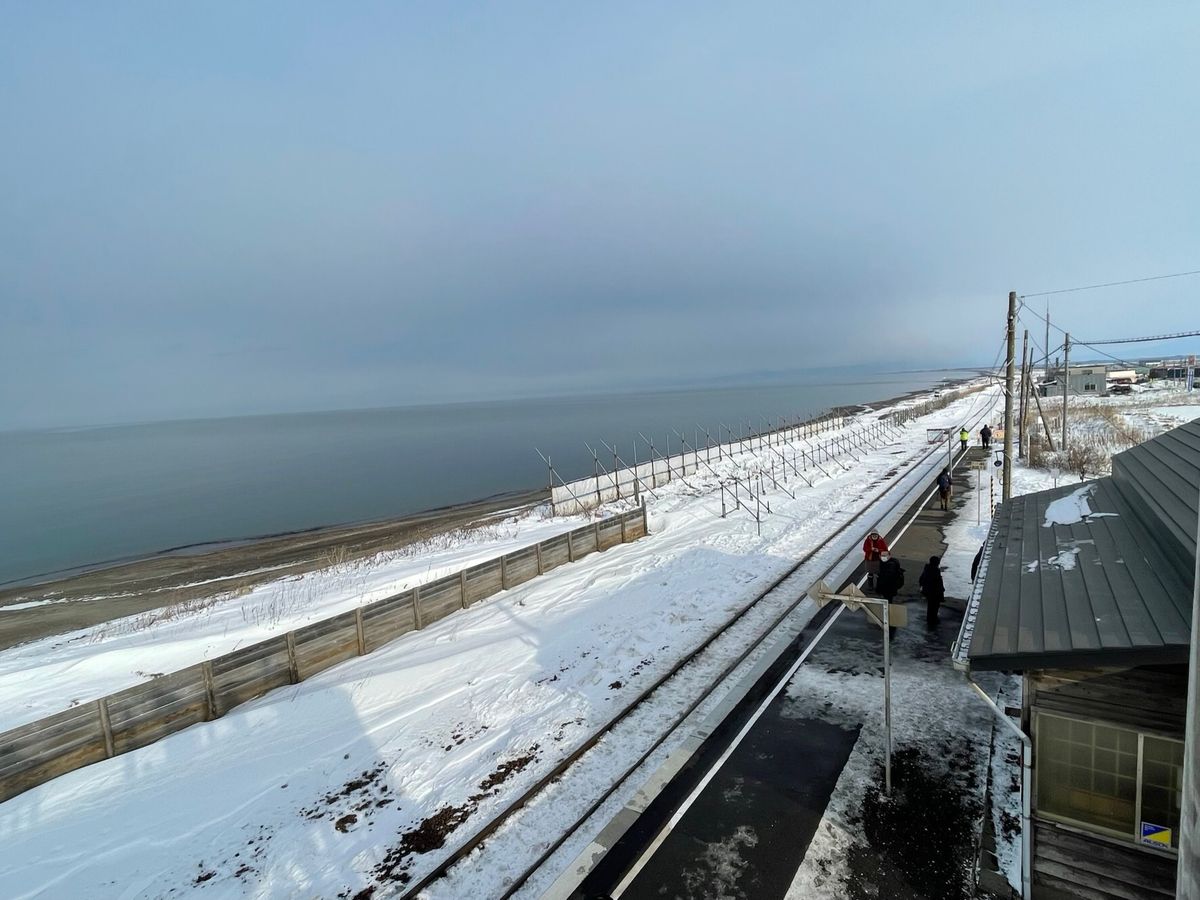 網走駅まで満員電車で移動して次は能取岬です。ここは絶景を楽しみにしていました。時間は15分くらいなので、あっという間でした。もっとじっくりゆっくりしたかったです。