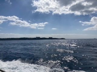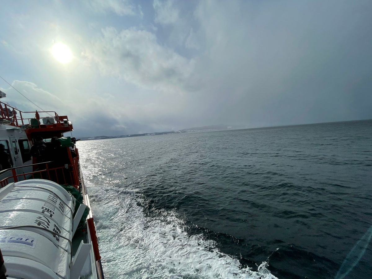 当日は晴れて波も穏やかに見えましたが、出港すると船はかなり揺れました。
