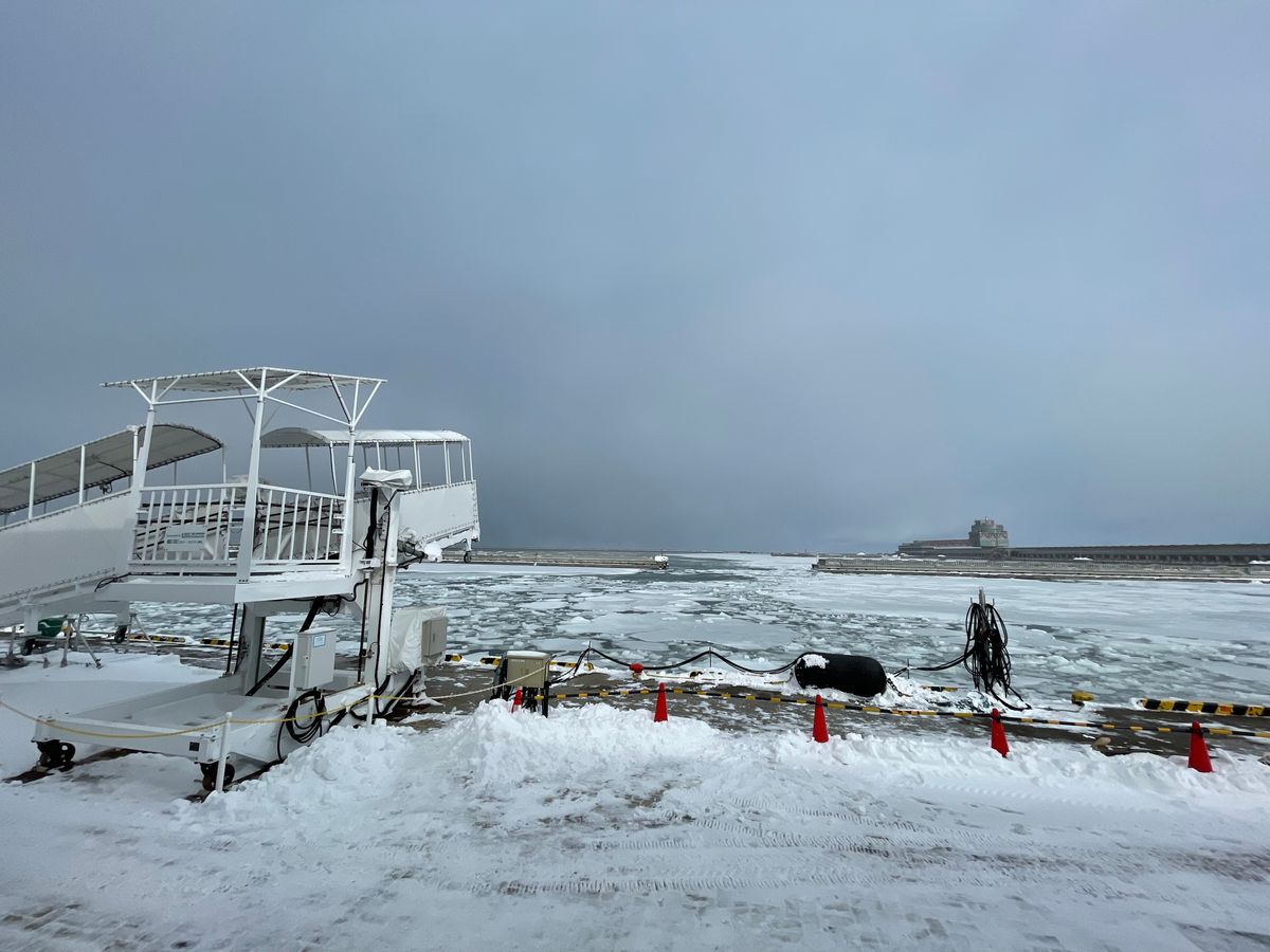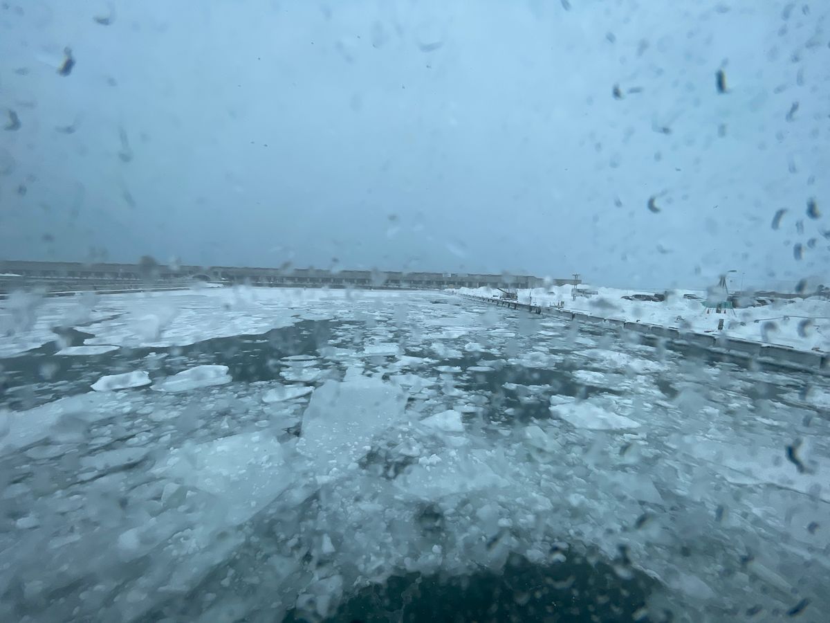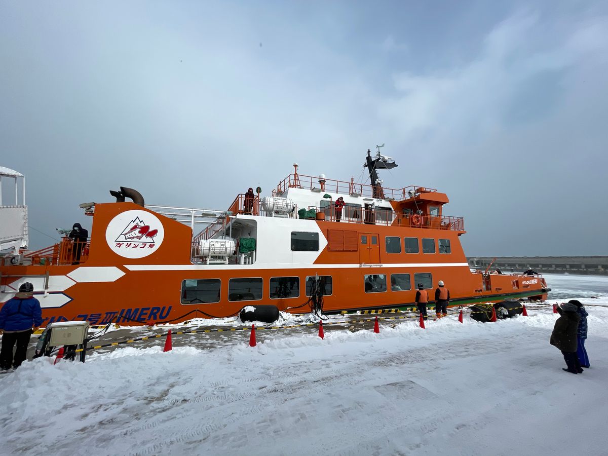朝早くバスで迎えに来てくれて乗ってからは暖房はしっかり効いていて寒くなく過ごす事が出来ました。トイレ休憩は、2回有り水分取り過ぎに注意さえしておけばOK(^^)4〜5時間で港に着いて船を、見た時は、遂にやって来た!って、テンション上がりました(^^)船着き場に行って船が入港する動画を撮りまた、また、テンション上がりました(^^)外は流石の寒さで気合いが入り、乗船したら、暖房が良く効いていたので、寒さは大丈夫でした。港の中にはすでに流氷っぽいのがあり期待がましました。が、沖に出れば出る程流氷が無くなり、時期はハズレで今回は残念でした(^^)でも、船が出られ体験出来、ラッキーです。帰り道も事故も渋滞も無く予定より早く帰って来られた事も、ラッキーでした(^^)流氷っぽいのだけでも見られて良かったです。ありがとうございました(^^)