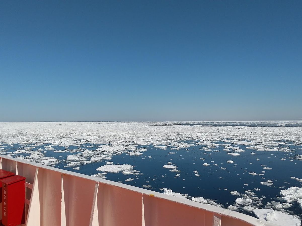 数年ぶり通算5回目くらいの乗船と思う。春も近い日付で氷も薄くなっていたが、この日も流氷帯を運行する船に乗船できた。FBによると、この数日後流氷は沖に流され陸地に近づくことがなかったようで、今シーズンの締めくくり間に合った。流氷帯に入ったらなるべく海面近くの低い場所から眺めることをお勧めします。