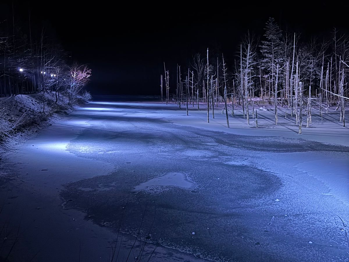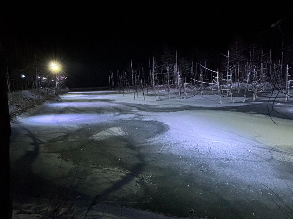 青い池は凍ってたので青い色の度合いは全くわかりませんでしたが、とても美しい景色でした。