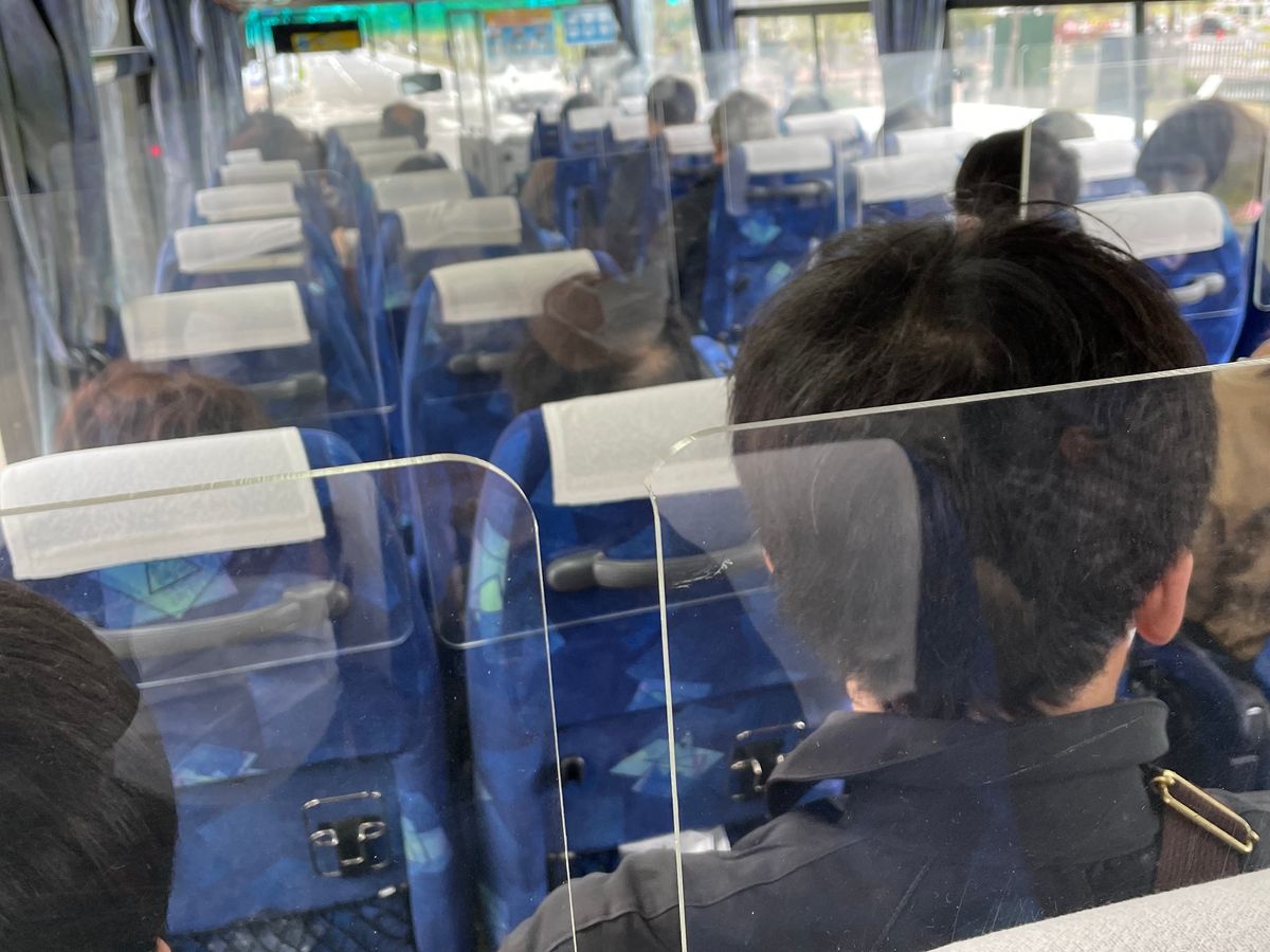 テレビ塔から乗車しました。バスはパーテーションで仕切られていました。普通のバスで電源、トイレ等は有りません、値段が安いのでしょうがないですね。5月でしたが中山峠では雪を見る事が出来ました。どこの観光地も30〜60分の時間がありゆったり出来ました。ガイドさんでは無く男性の添乗員さんでしたがお得な情報等が聞けて良かったです。ゴールデンウィークで渋滞が心配でしたがどこもガラガラでスケジュール通りでした。