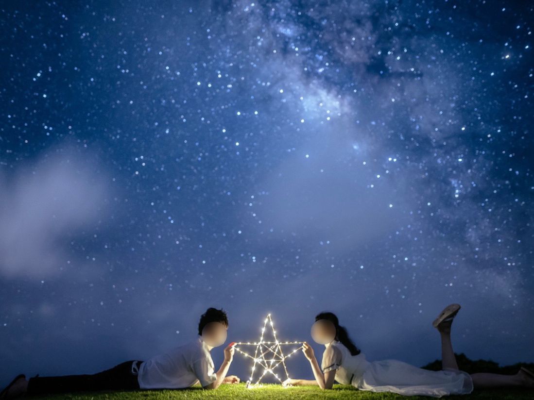 撮影場所は、肉眼でもものすごく綺麗な星空が見えて驚きました。カメラマンの方はとても慣れていて、ポーズのアドバイスなどスムーズに頂き、自然に撮る事が出来ました。つい先日写真のデータ頂きましたが、本当に綺麗で大満足です。参加してよかったです。ありがとうございました!