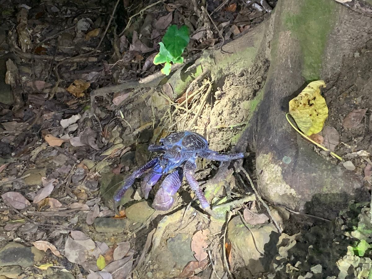 最初はジャングル散策で、ヤシガニは100%会えるかわからないとのことでしたが、雨上がりということもあってヤシガニがそこら中で見ることができました!