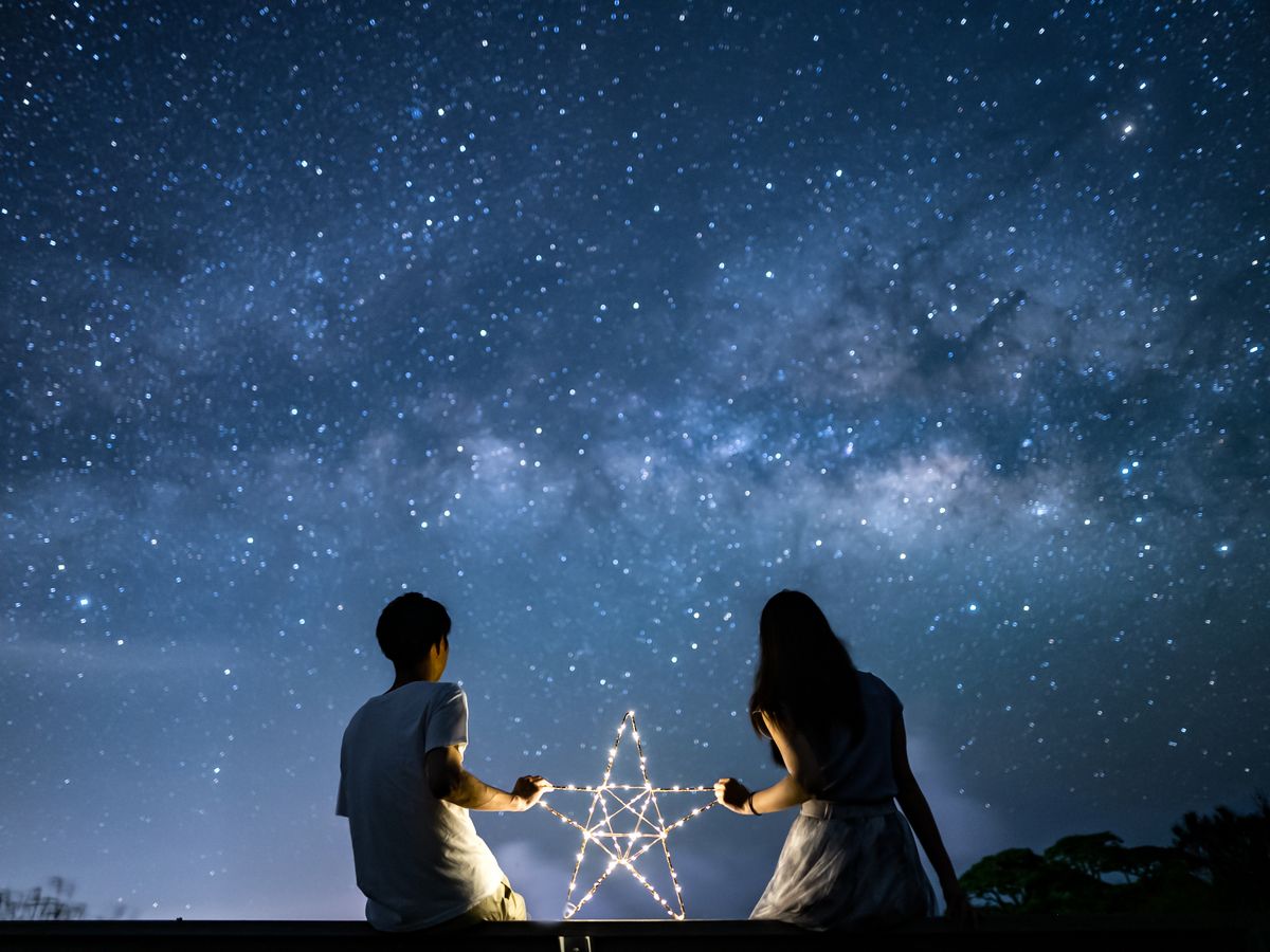 新婚旅行の思い出にと、星空フォトツアーに参加しました。天気も良く、満点の星空の下、最高の写真を撮ってもらいました。写真の確認もその場でさせてもらい、声が出るほどいい写真でした。