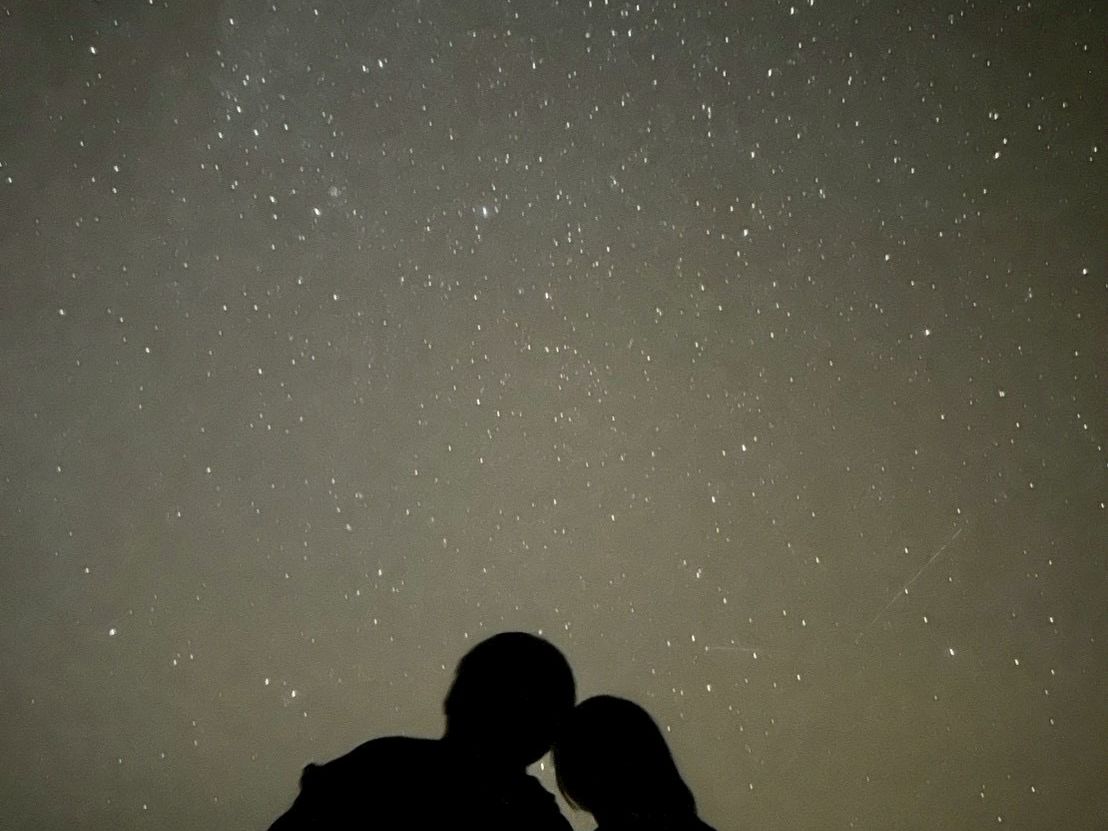 西表島の空いっぱいに広がる満天の星空と流れ星は、これまで見た中で一番の美しさでした。星を眺める私たちをスマホで綺麗に撮ってくれた、その写真には流星まで写っていました!一生の宝物です。