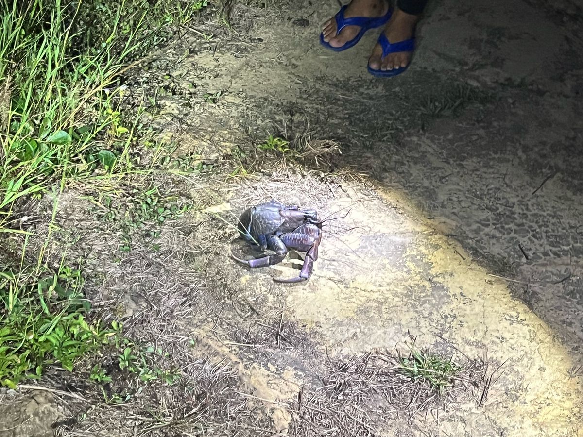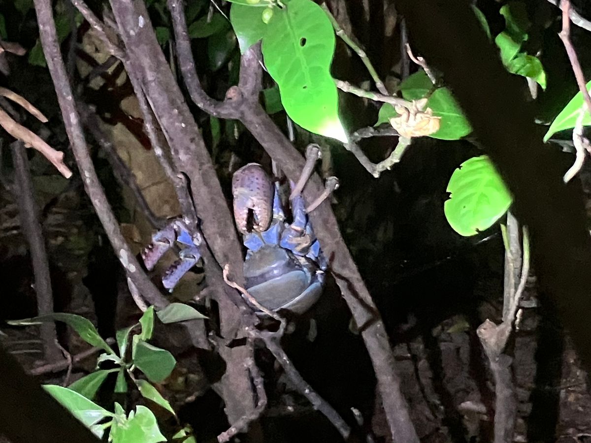 こわくて個人では行くことができない真っ暗なジャングルをライト片手に進むスリル満点の体験で、まさにツアーならではの非日常!熟練のガイドさんのおかげで、ヤシガニを5匹も発見し、木の上で眠るアオアカバト2羽や、蠍、オオゴマダラ、さまざまな種類のカエルにも出会えました。最後に海岸へ出ると、視界いっぱいに広がる満天の星空。まるで宇宙に包まれているような感覚で、心が静まりました。自然の神秘と宇宙の広がりを肌で感じられる、参加して本当に良かった大満足のツアーです。