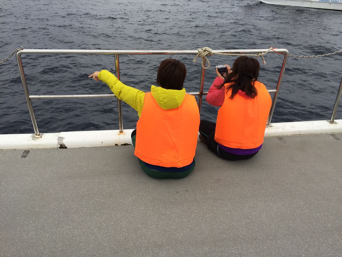 若くてイキイキしたお兄さんたちがスタッフで、船に同乗してくださったスタッフの方は必死にクジラを探してくださっていましたが、シッポ?が見えたような…潮吹き?が見えたような…そんな感じでした。でも沖縄の海や風を体感できるだけでも参加する価値はありました。