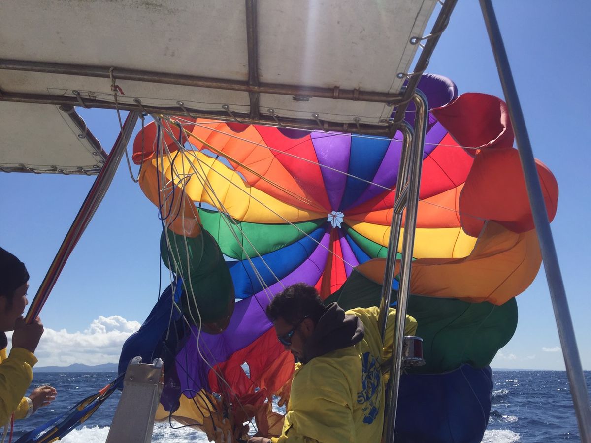 ホエールウォッチングの前にやりましたので、時間の節約もできました。スタップの方もとても親切でイケメンに近い方々でしたね。女性に強くおすすめしたいと思います。(笑) 妻の場合には、最初のパラセーリング体験なので、少しの不安感がありましたが、もうすぐ楽しみました。高いところでキレイな空と海を見ると、本当にすがすがしい気持ちになります。やっぱり、沖縄の自然は素晴らしかったということは、ボーナス!!