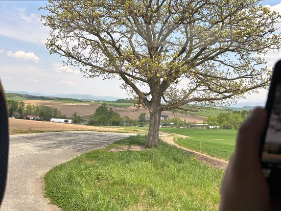 花の季節ではないが 車少なく人も少なくしかし 富良野 パッチワークの丘も