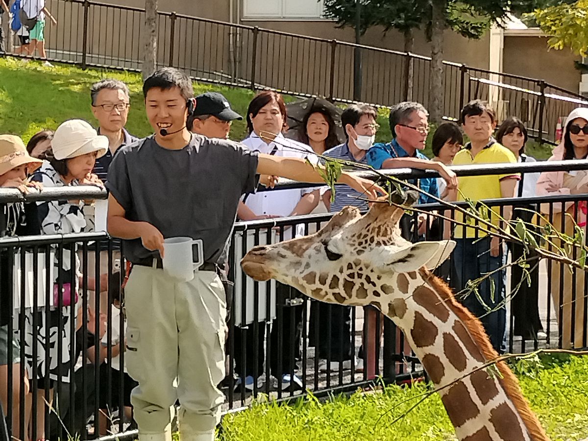 写真は旭山動物園のキリンさんもぐもぐタイム、カワイイ!