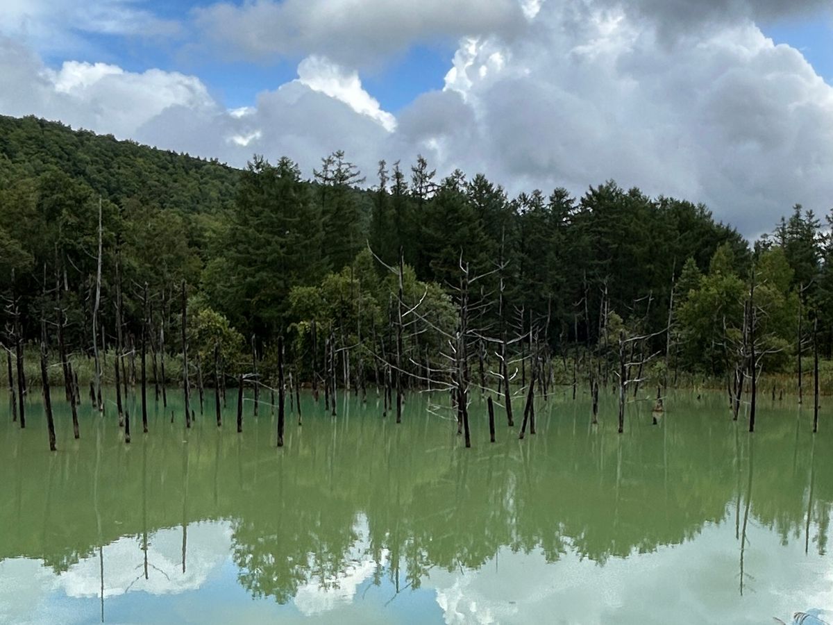 青い池は本当に青く綺麗です。