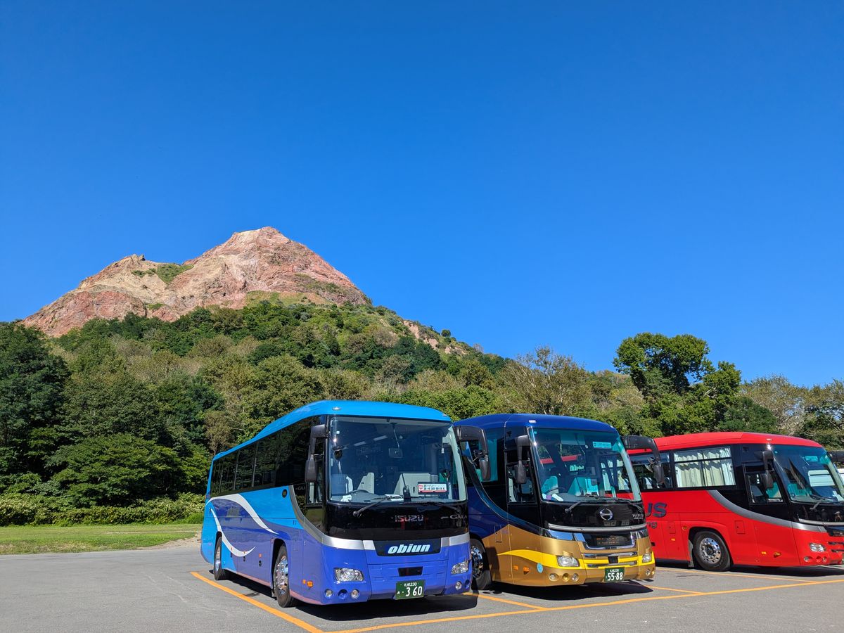 貴社のツアーは3年連続参加です。今回は支笏洞爺観光でしたが、2台口のバスの中