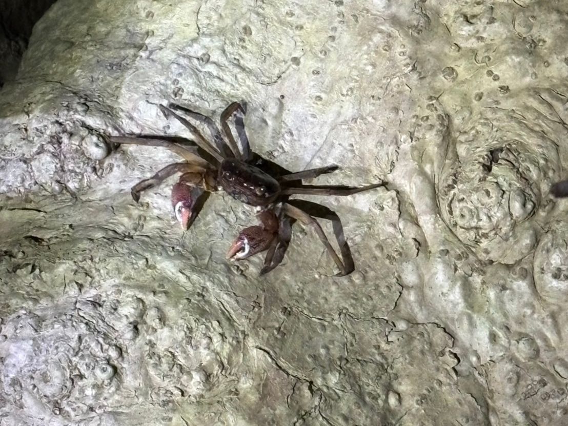 ヤシガニハンターのツアーにご参加いただき、本当にありがとうございました!皆さんで力を合わせて7匹ものヤシガニを見つけられたのは、まさに大冒険でしたね。特に大きな個体や、4キロ級の特大サイズに出会えたのはとても貴重で、ガイドとしても一緒に盛り上がれて嬉しかったです。西表島ならではの自然体験を楽しんでいただけたことが、私にとっても大きな喜びです。また次回もさらに面白い生き物たちを探しに行きましょう!