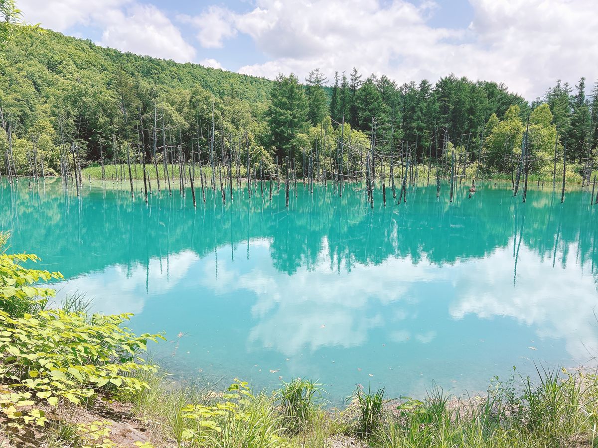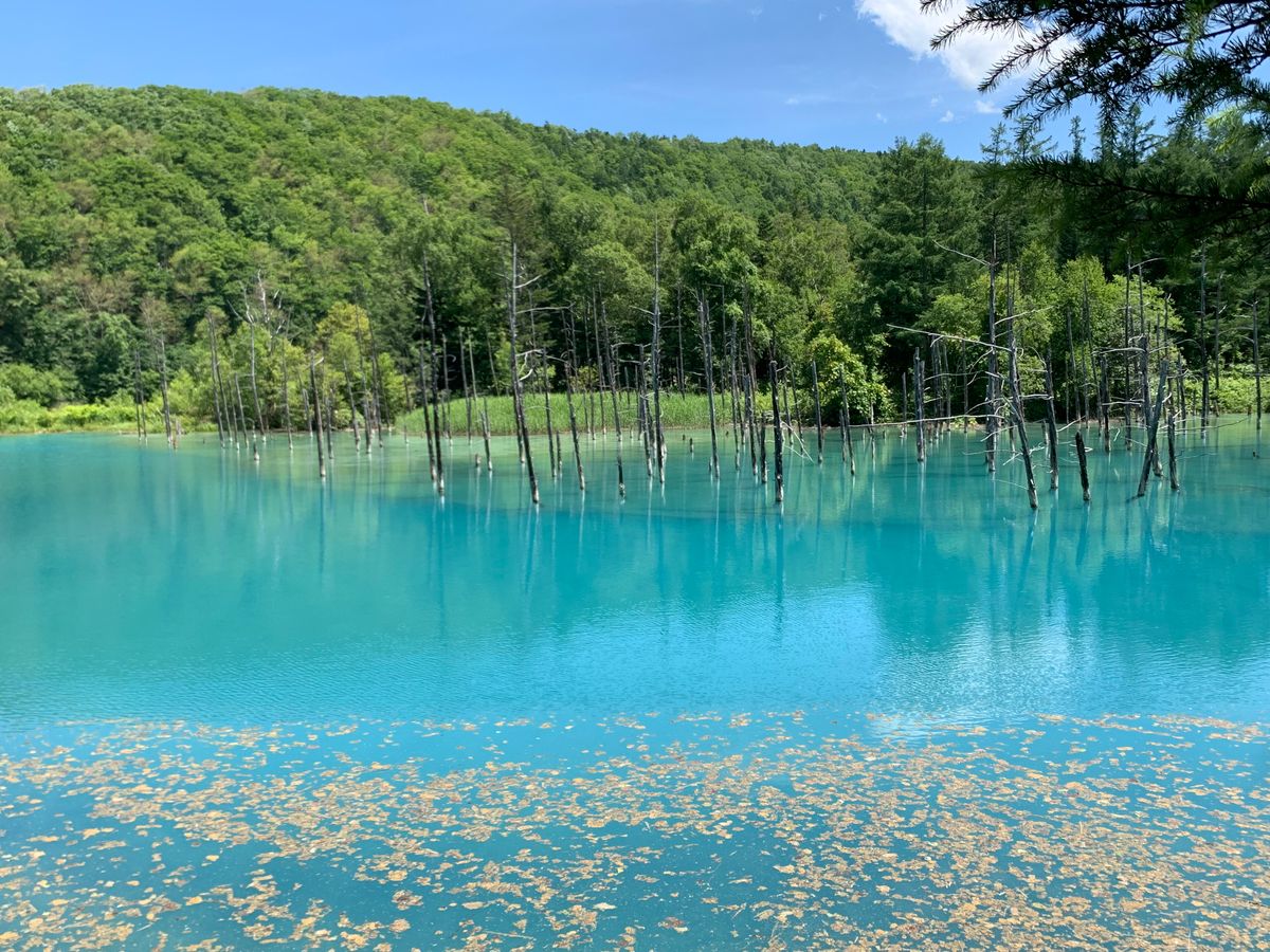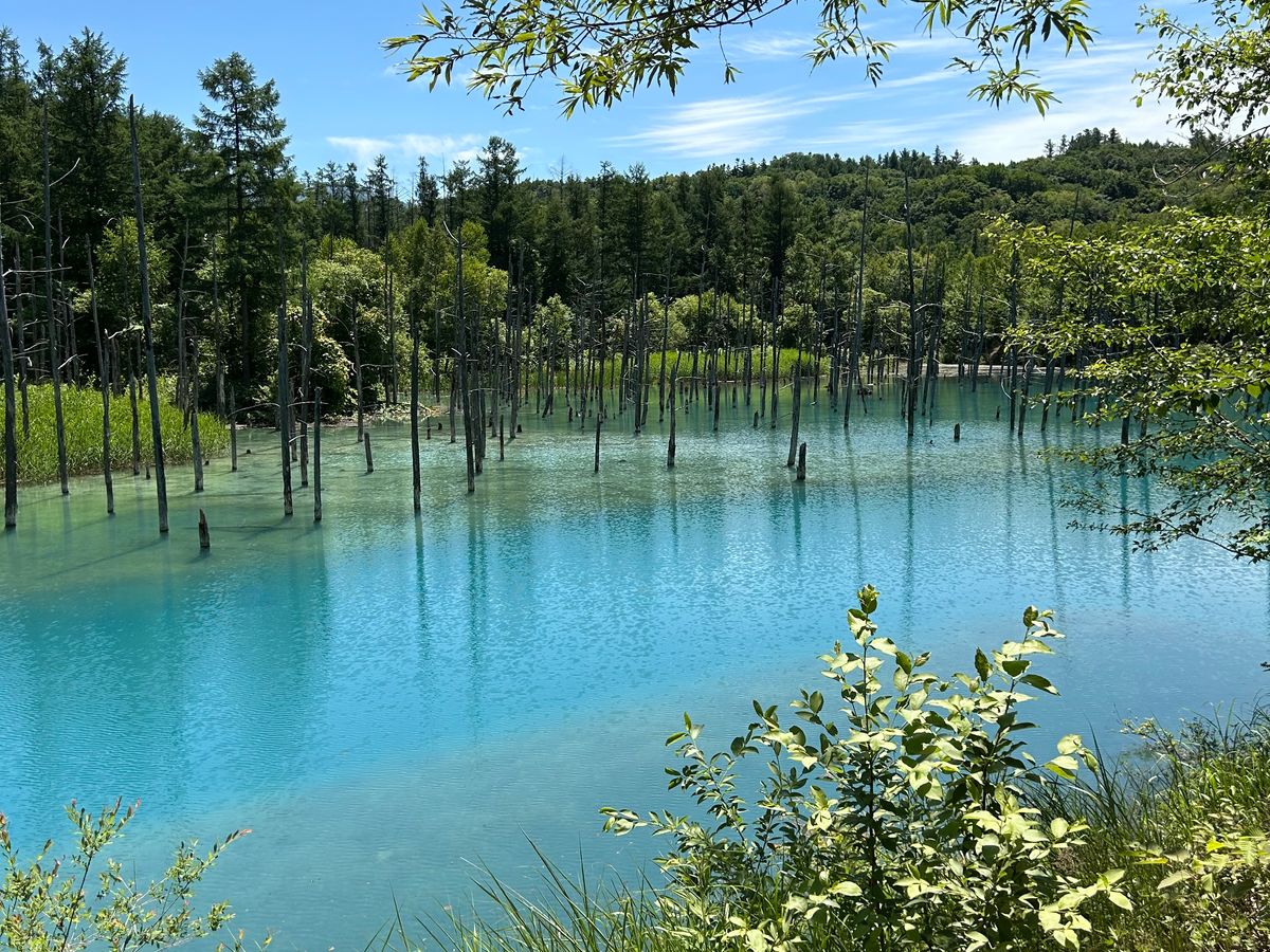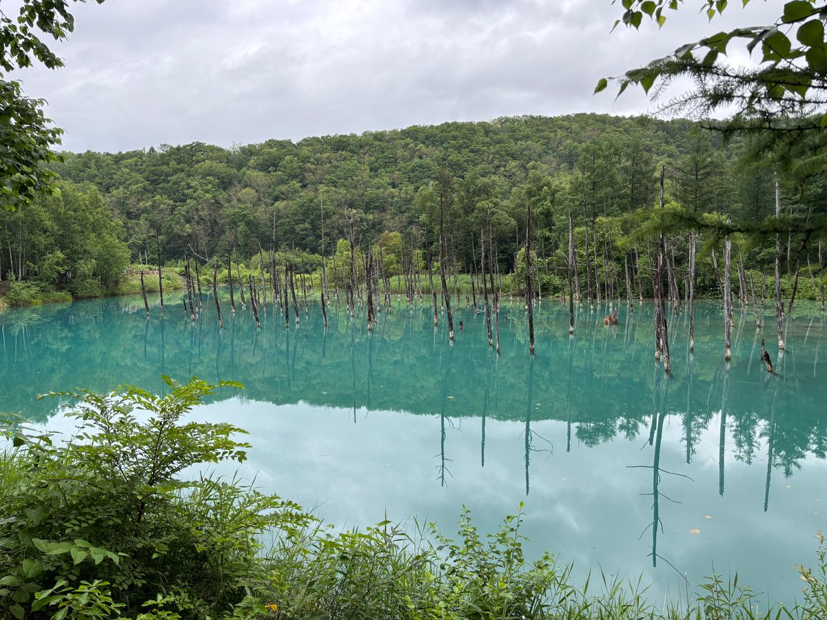 青い池は、雨のせいか水色っぽく見えましたが、それもまた幻想的でした。