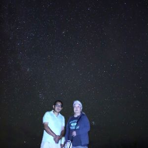 西表島の空いっぱいに広がる満天の星空と流れ星は、これまで見た中で一番の美しさでした。星を眺める私たちをスマホで綺麗に撮ってくれた、その写真には流星まで写っていました!一生の宝物です。