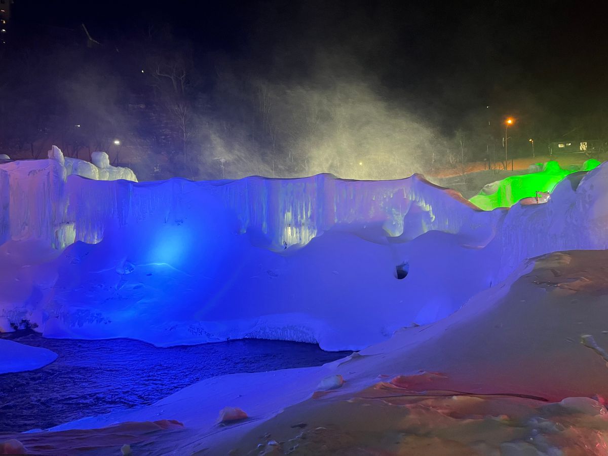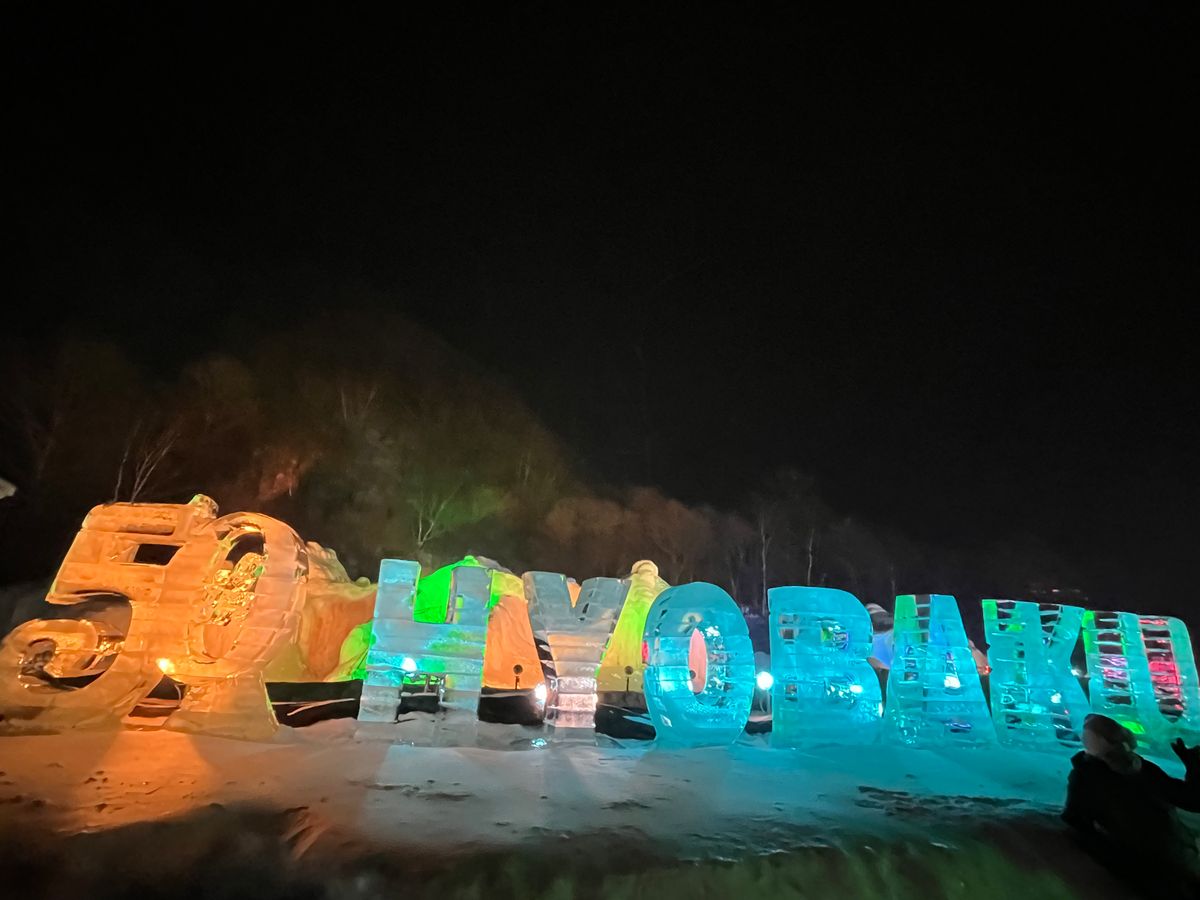 ライトアップされたブルーの氷のモニュメントや、マシュマロを焼ける焚き火コーナーなど、見所いっぱいでした。