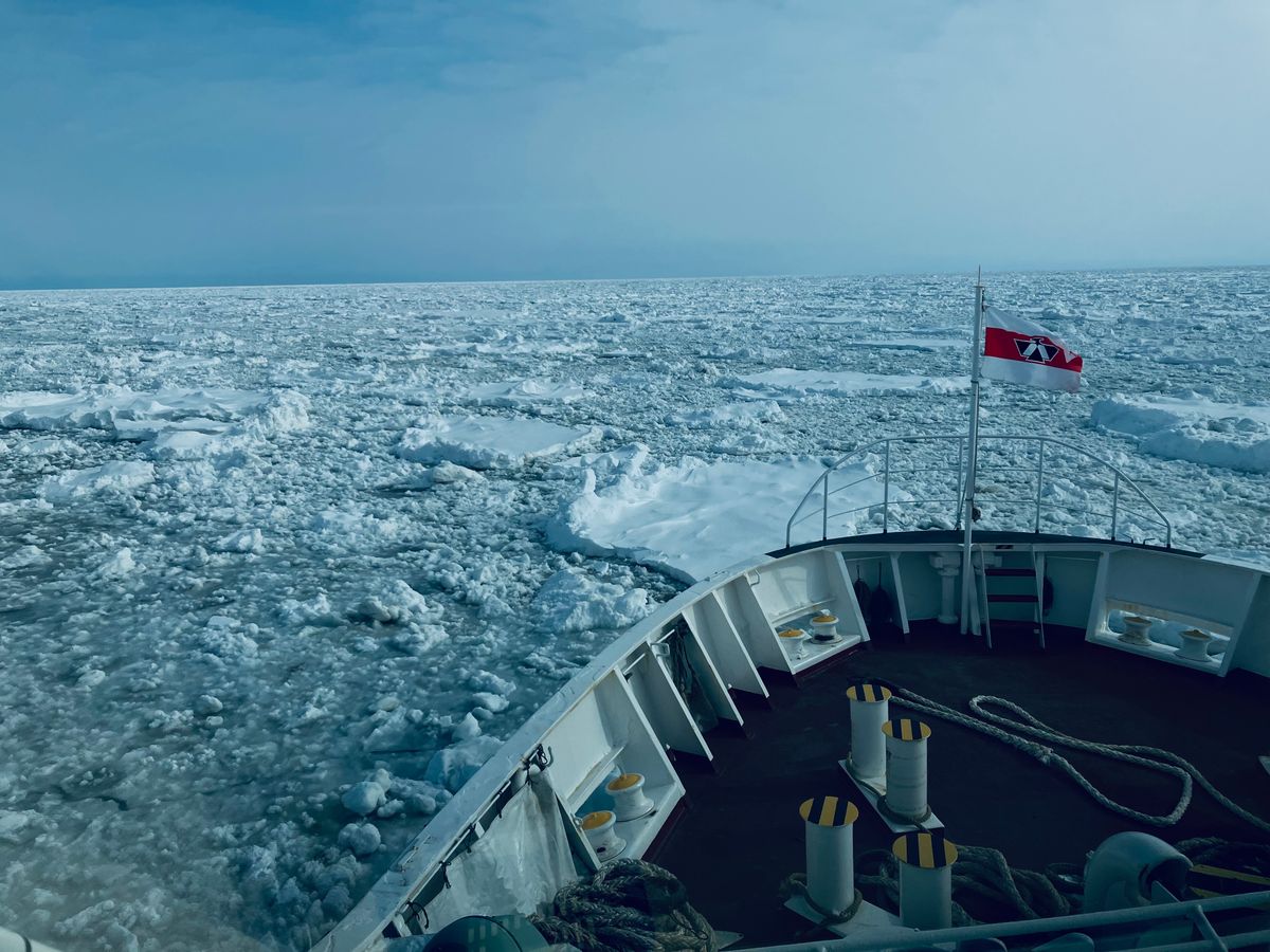 観測史上最遅レベルでなかなか流氷が来なかったので毎日やきもきしながら海氷速報を見ていましたが、予約した2月最終の週末はちょうど流氷が接岸していて幸運にも流氷ウォークできました。天気もマイナス2度で雪がやんで風は弱く快適。