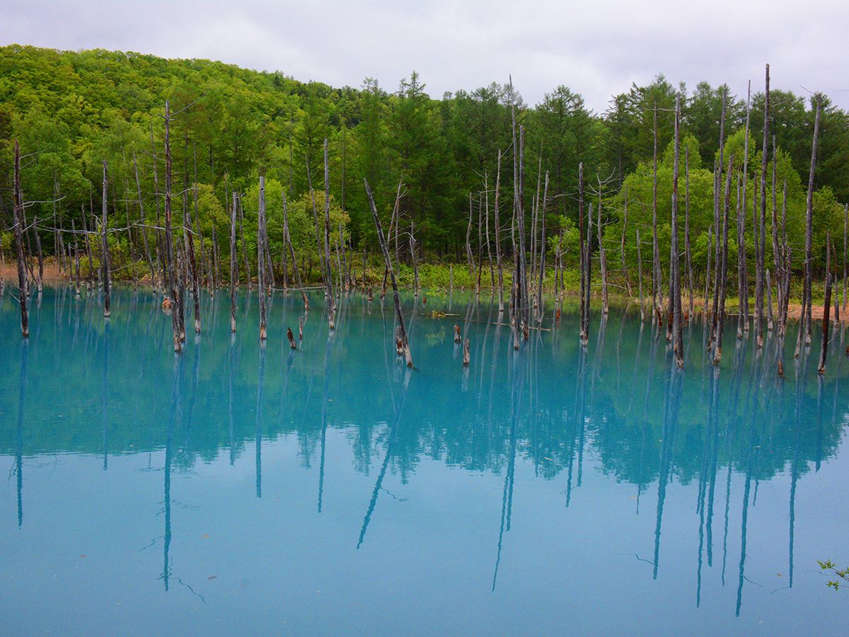 青い池は、いがいと小さくビューポイントは限られています。人が多いと魅力が半減します。