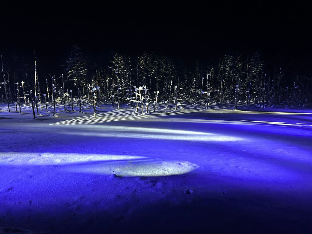 4、青い池もちょうどライトアップの時間に着いたこと。綺麗な写真が撮れました