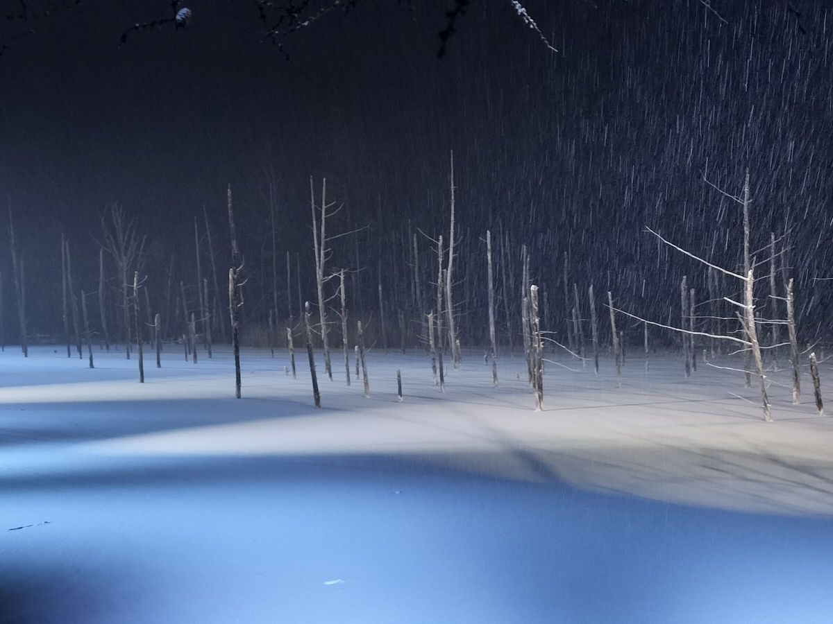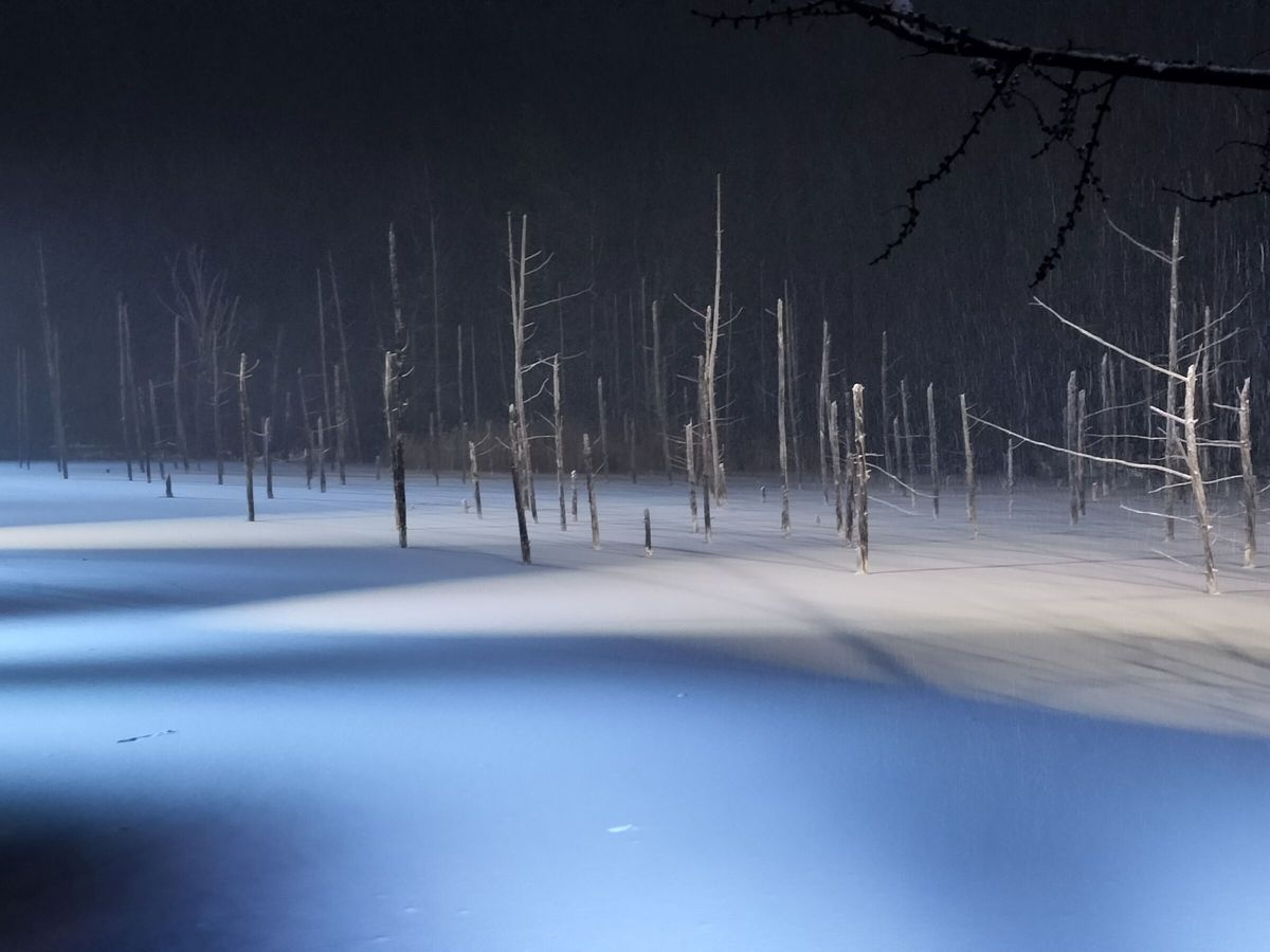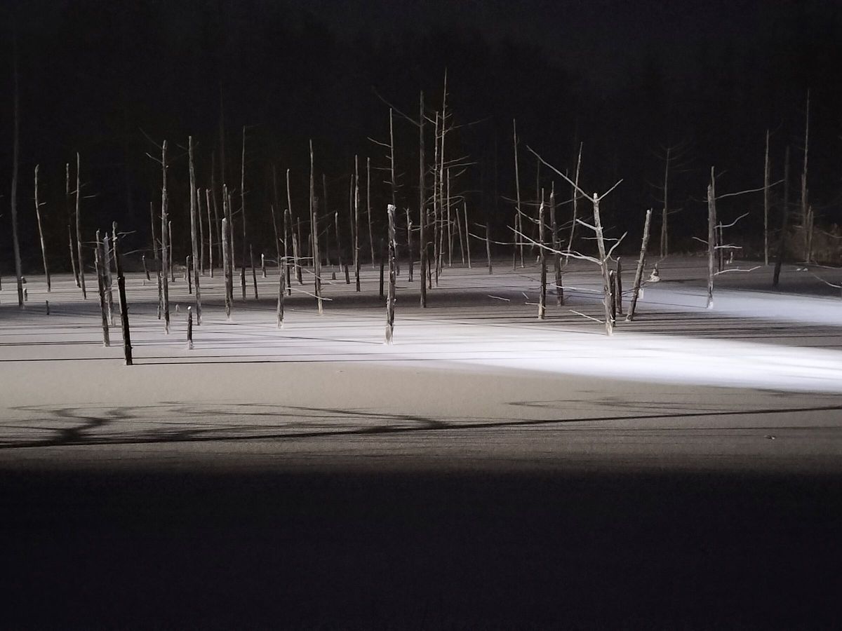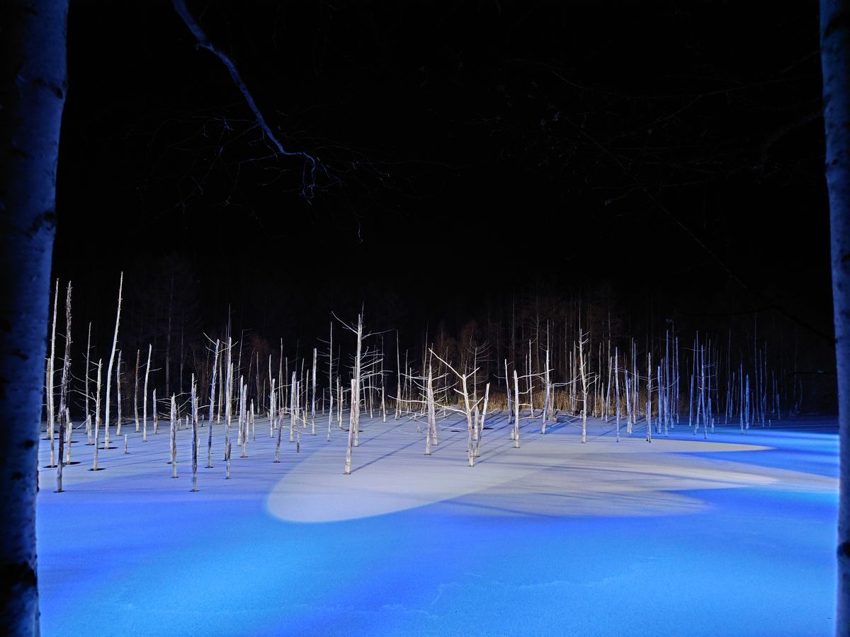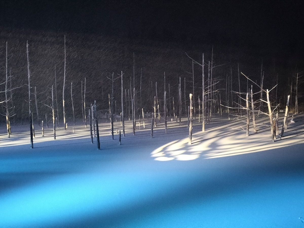 青い池はナイターのライトが青いのか池が青いのか解らない感じでした。雰囲気は良かったです。