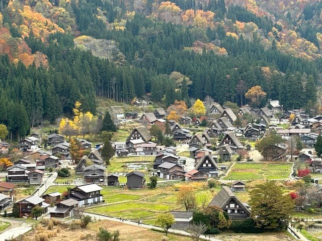 自分では立ち寄りづらい五箇山集落もコースに含まれており、道中の山間も紅葉が見頃、