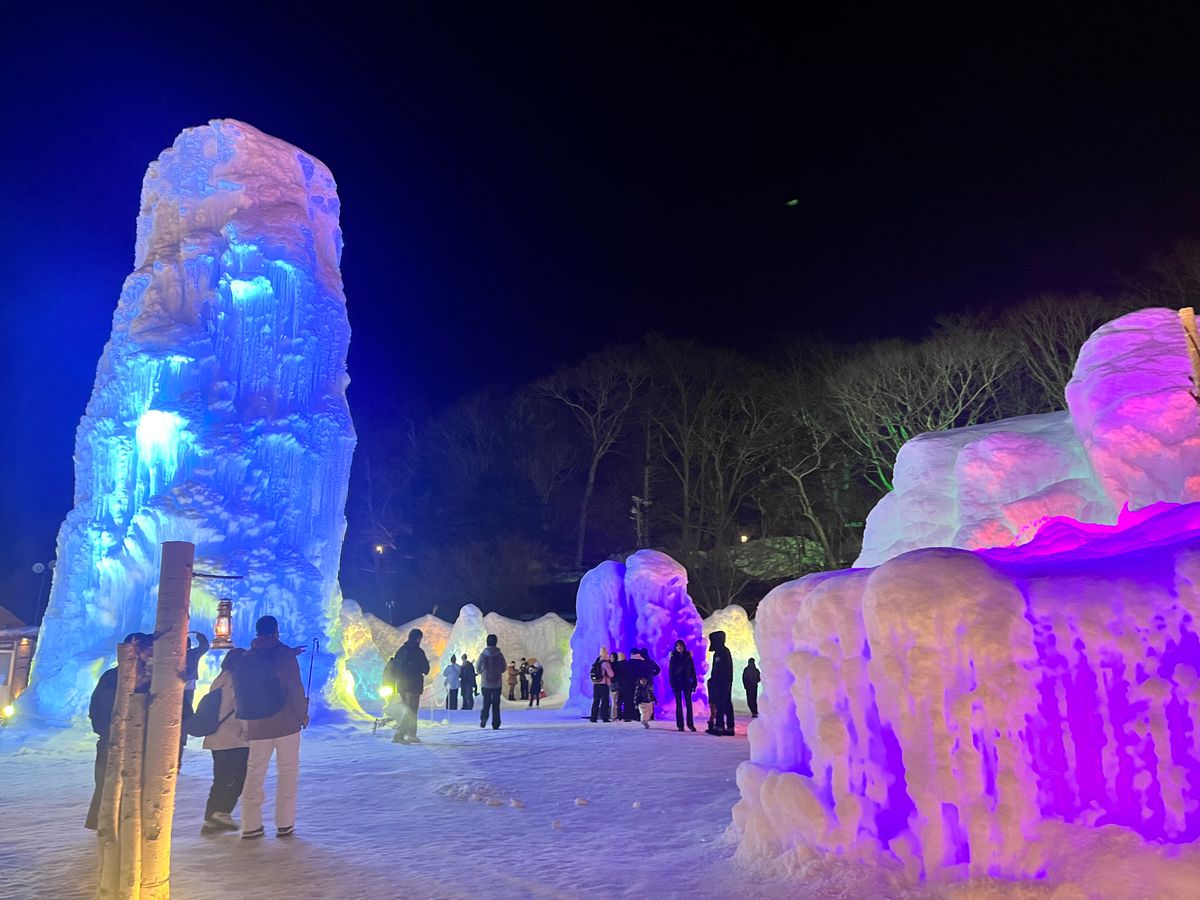 残念だったのは、最後に行った支笏湖氷濤まつりで、時間が短かったので、ライトアップしたところが見えなかった事です。また、混雑していて、どこも並んでいたので、見れない所が結構ありました。