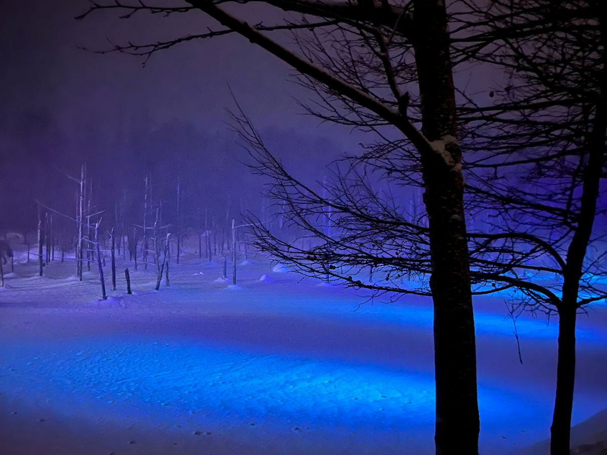 青い池も凍ってしまっていたものの雪の降る中のライトアップでとても美しい景色を体験できました。バスの運転手さんや、案内係の方も気さくで話しやすく全体的に大満足でした。帰って途中で寄っていただいたお店でおすすめいただいたお菓子を美味しくいただきます。ありがとうございました。
