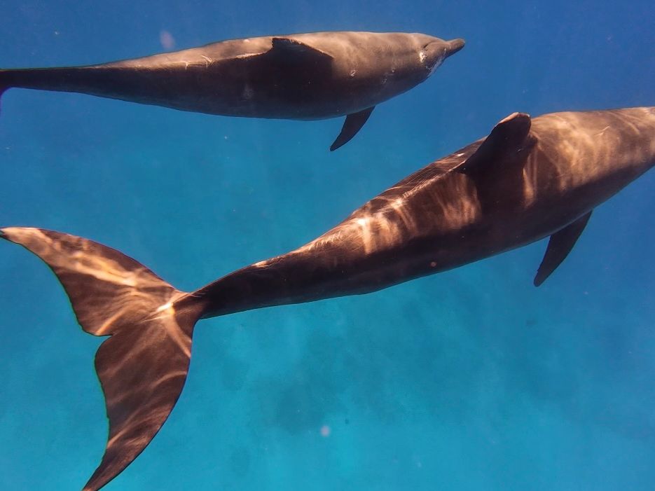 泳ぐのは自己責任なので泳ぎたいけど自信が無いという方はウェットスーツやライフジャケット等があるといいと思います。私も当日は深く潜ることはせずライフジャケットを付けて常に浮いている状態で参加しました。それでも写真の通り運が良ければイルカが綺麗に近くで見られるのですごく満足です!)