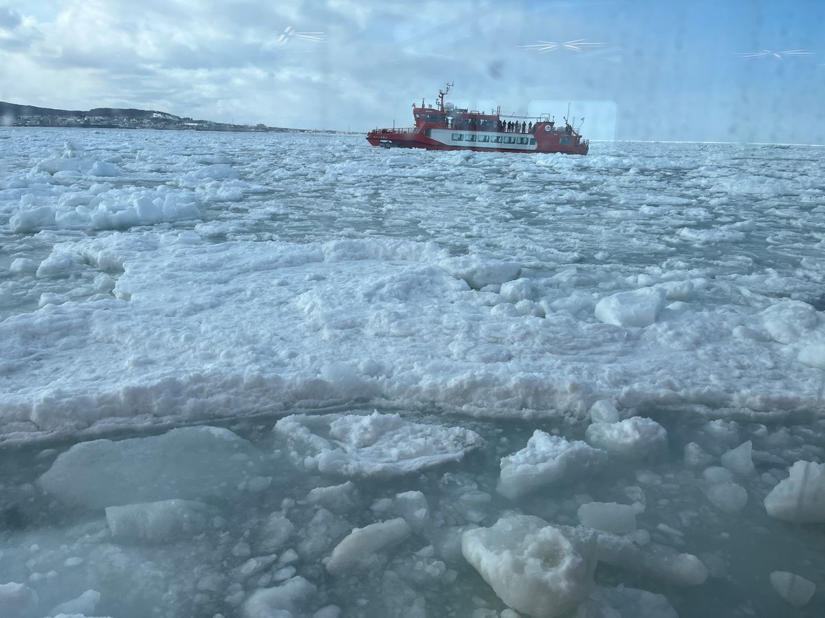 当日朝はドキドキしましたが、お天気も良く、流氷をガリガリ削りながら進む姿を見る事が出来、感動しました。