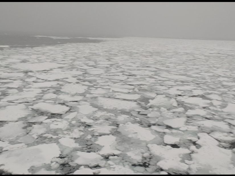 最初はふつうの海へ出港した感じでしたが、程なく薄氷が浮かび出し、みるみる大きな流氷の流れついたエリアに到達しました。