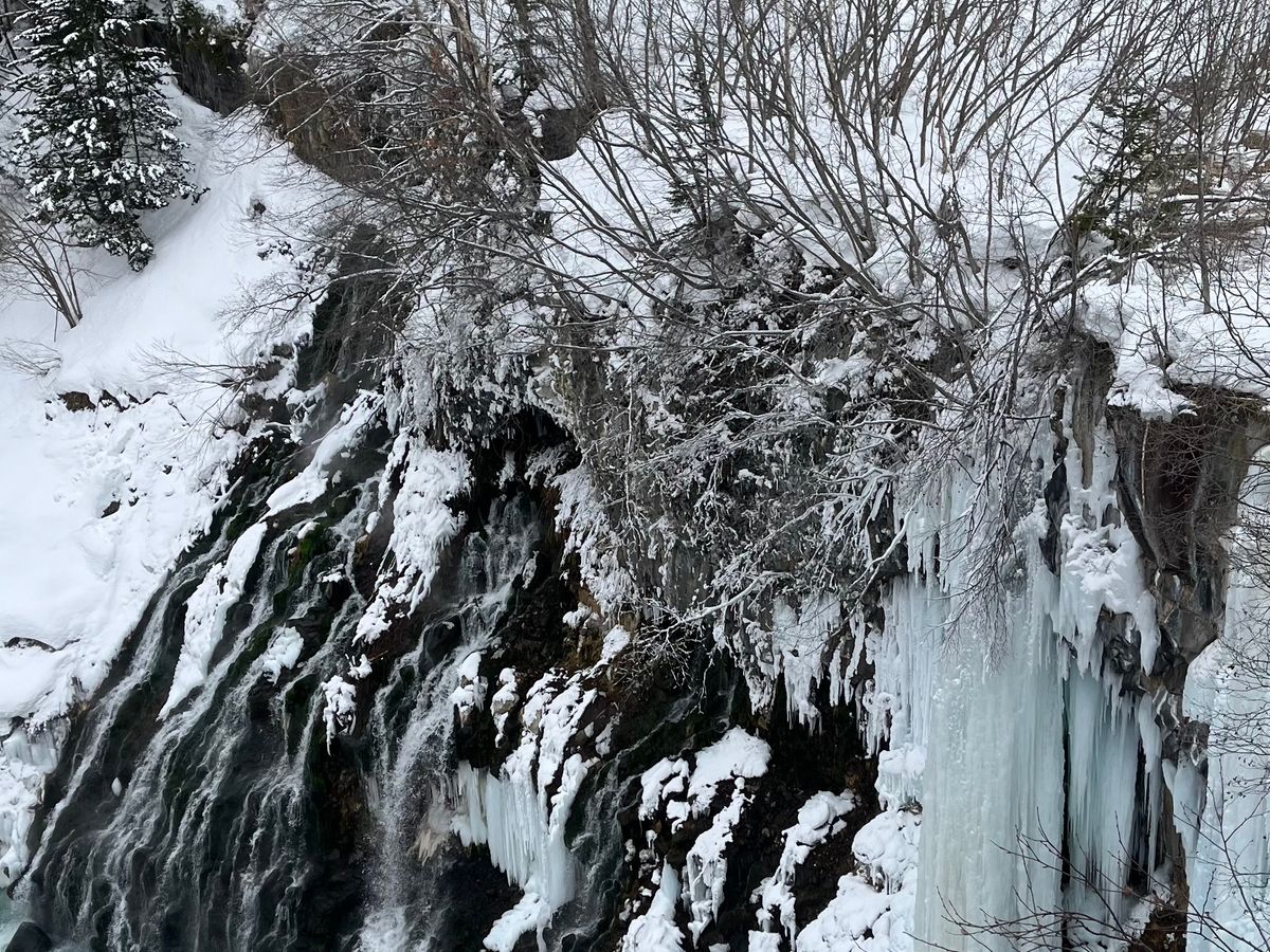青い池は、全て雪で覆われていたため予想外でしたが滝は大迫力で見応えがありました!