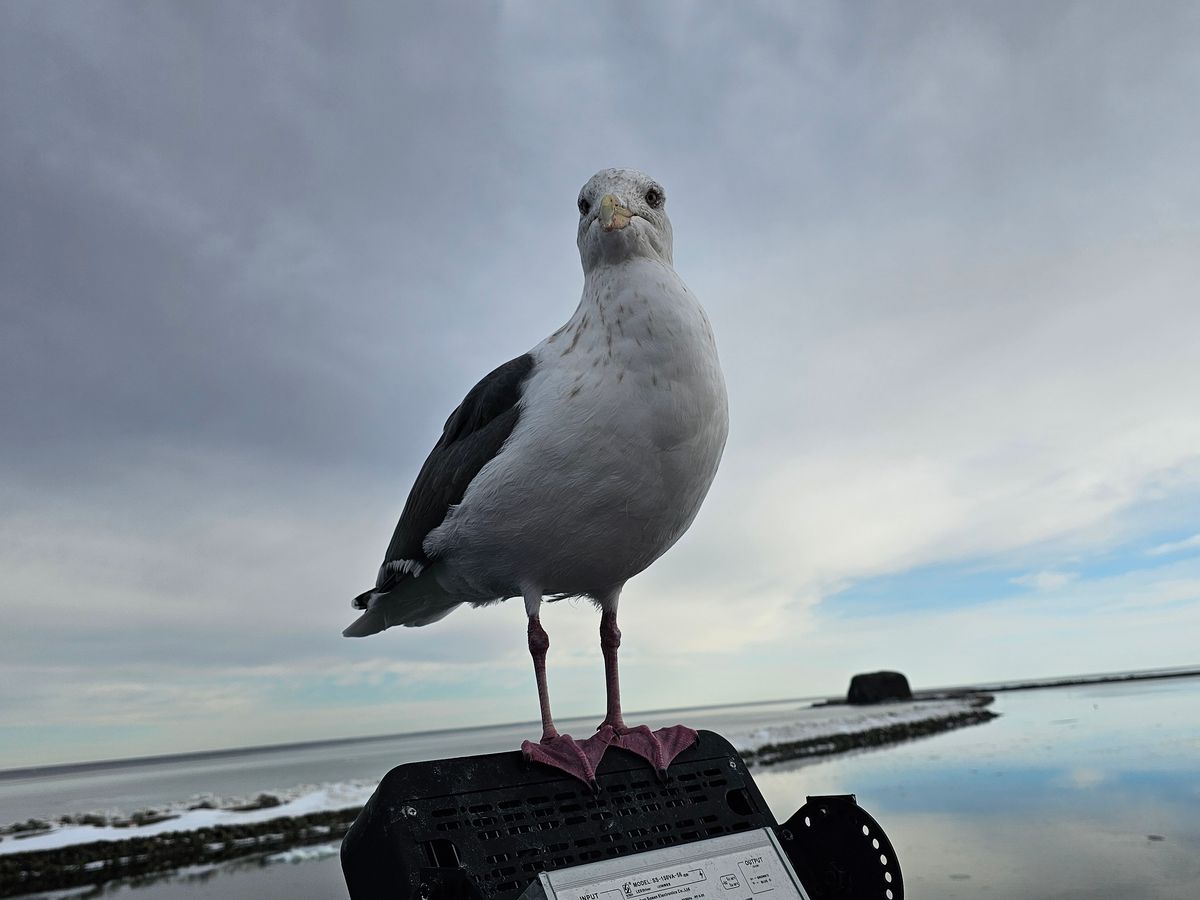 カモメが船上に飛んできて間近で見ることができました。