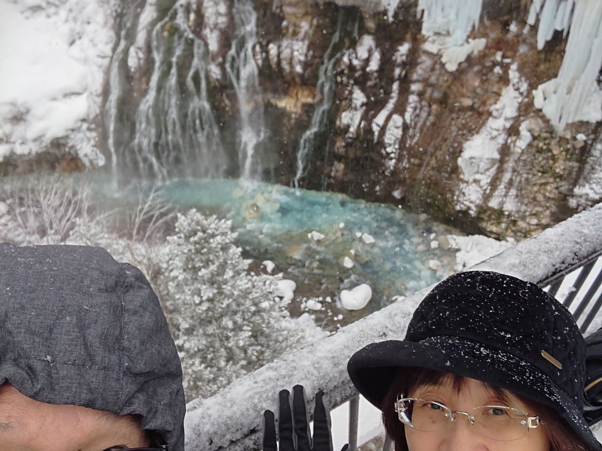 その後、雪で真っ白な青い池をみたり、雄大な滝をみたり、満足でしたよ