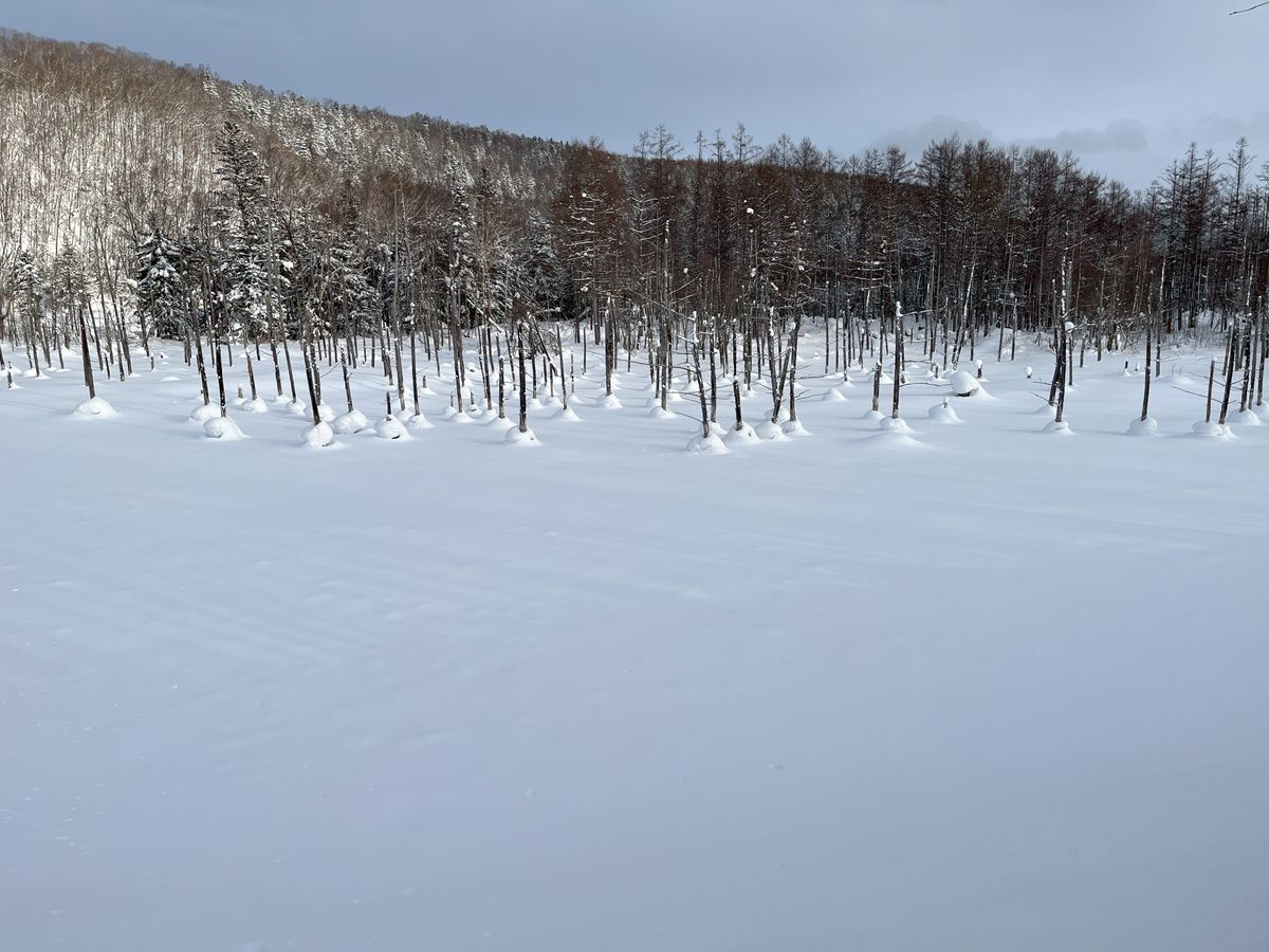 青い池は、そばの川は凍ってなく、青っぽい川の流れも見れたので、OK