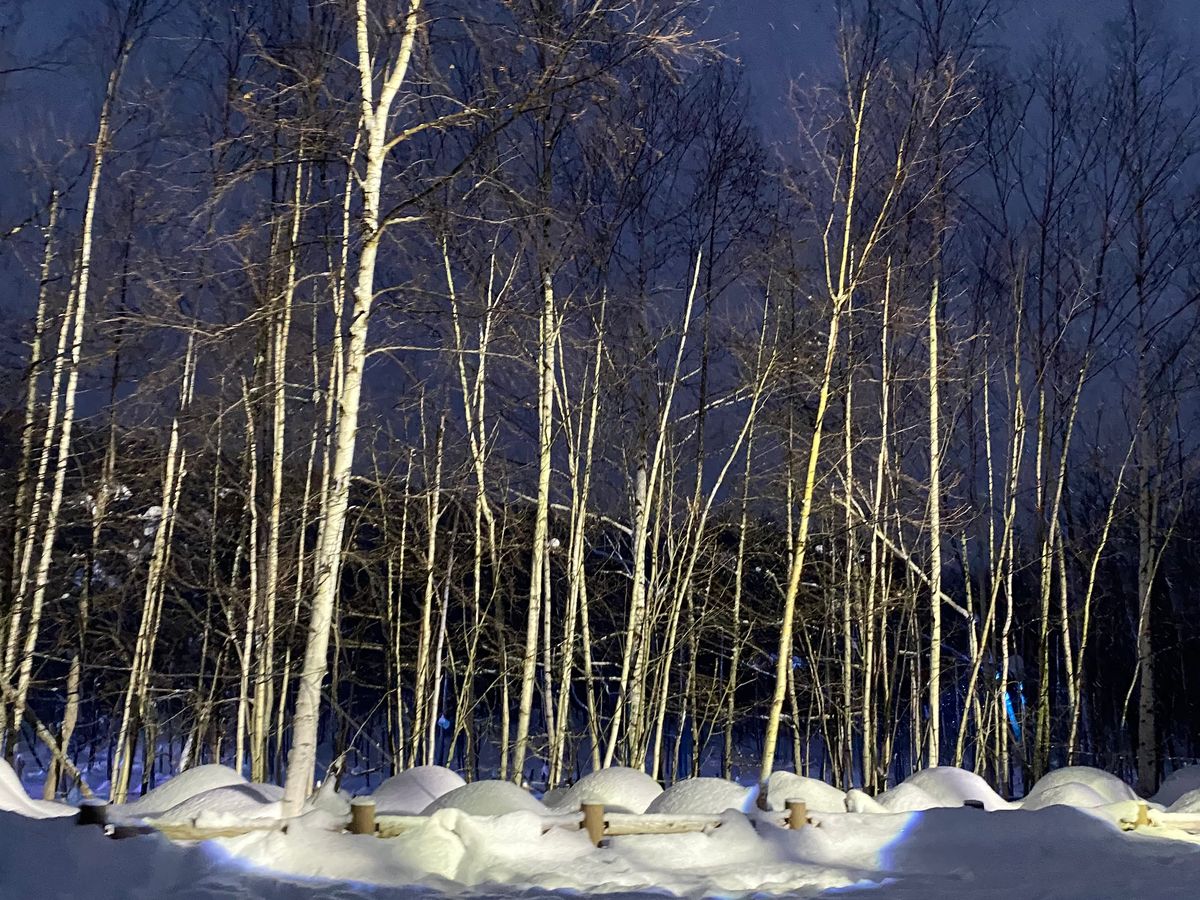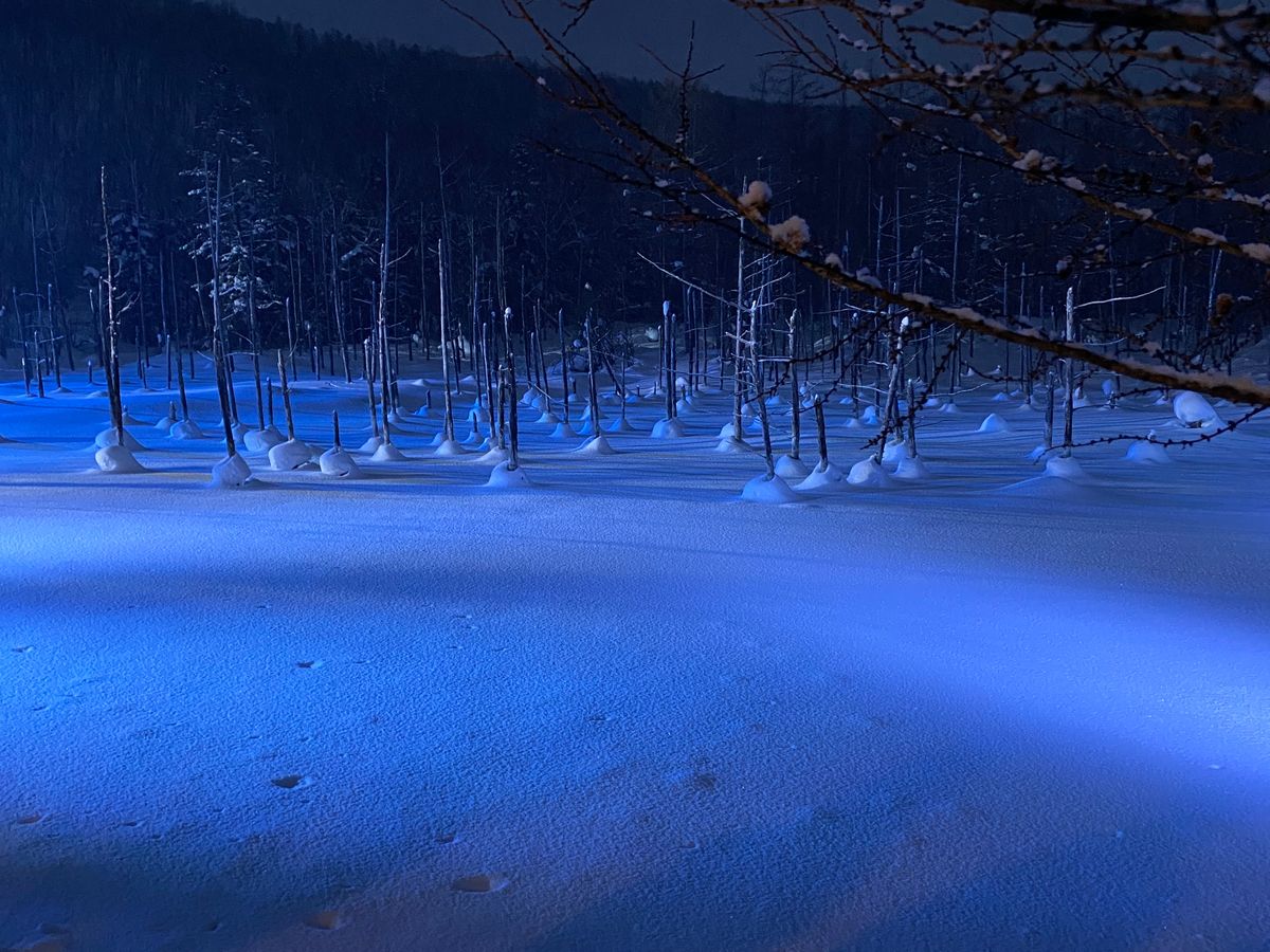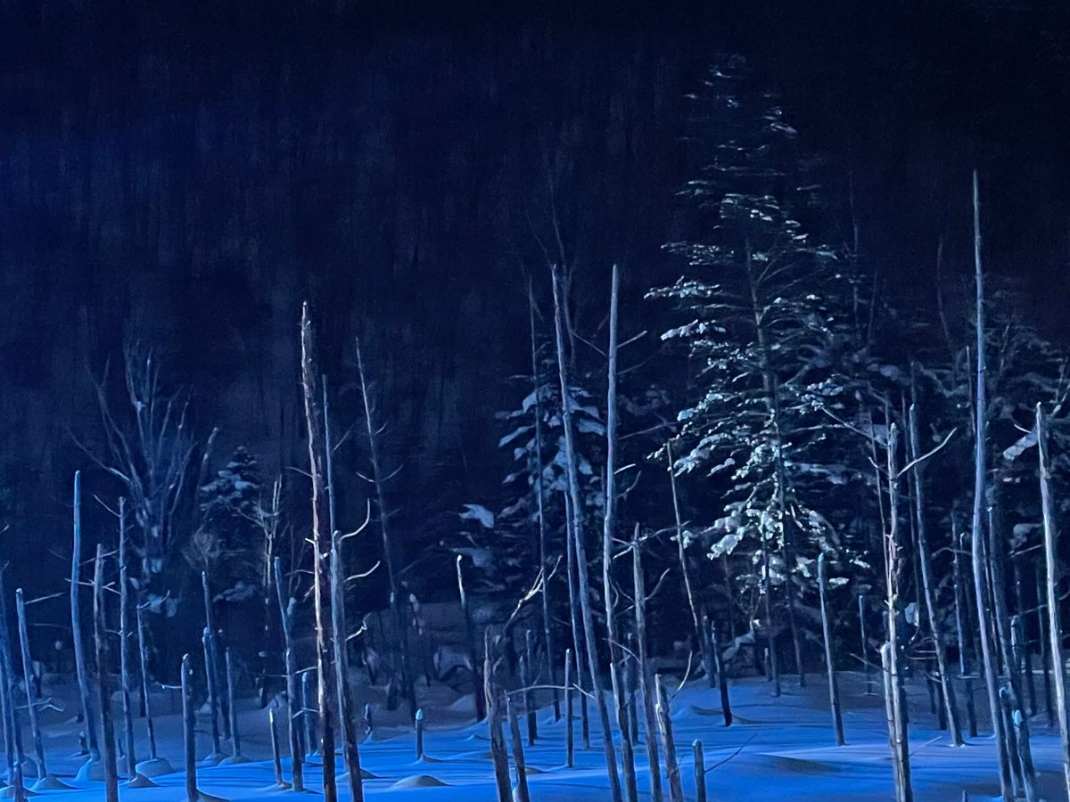 とても寒かったけれど、ライトアップされた「青い池」は幻想の世界へ足を踏み入れた感じで、感動しました。