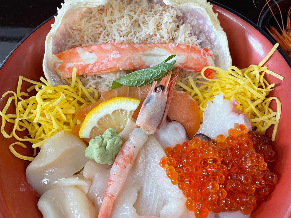 ランチは40分くらいしかなく、慌てて食べた感じでした。雪道なので、もう少し途中の高速でのトイレ休憩などを減らして現地に早く到着して、余裕があればいいと思います。海鮮丼は既に到着時には席に用意されていたので、ご飯は硬く冷たく、残念でした。乗っている具は普通のレベルでした。もしランチ付き以外の選択肢にしても現地で食べる時間が30分くらいしかないのでコンビニ食になってしまいます。先のタワーも行ける時間がありませんでした。ついて、食べて、乗船して、かまぼこ屋に寄って、カニのオブジェで写真を撮って終わるという流れで、ゆっくり散策時間はありませんが、ツアーなので割り切って参加という意味では問題ありませんでした。