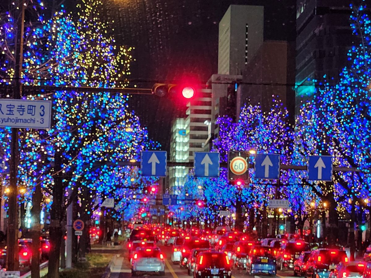 御堂筋、イルミネーション、バスで通り抜けの感じで、写真には、残せなかったのが、残念たった