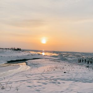 曇りで日の出のキラメキが無かったのが残念でしたが、夜に降った雪が波で消された模様がとてもきれいなアクセントになりました。