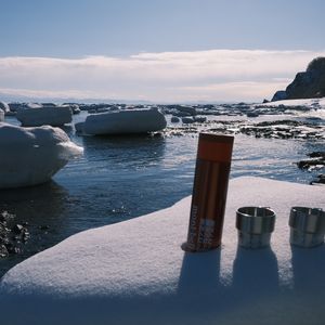 æµæ°·ã®äžã«ã³ãŒããŒã飲ããªããŠãèŽ