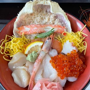 ランチは40分くらいしかなく、慌てて食べた感じでした。雪道なので、もう少し途中の高速でのトイレ休憩などを減らして現地に早く到着して、余裕があればいいと思います。海鮮丼は既に到着時には席に用意されていたので、ご飯は硬く冷たく、残念でした。乗っている具は普通のレベルでした。もしランチ付き以外の選択肢にしても現地で食べる時間が30分くらいしかないのでコンビニ食になってしまいます。先のタワーも行ける時間がありませんでした。ついて、食べて、乗船して、かまぼこ屋に寄って、カニのオブジェで写真を撮って終わるという流れで、ゆっくり散策時間はありませんが、ツアーなので割り切って参加という意味では問題ありませんでした。