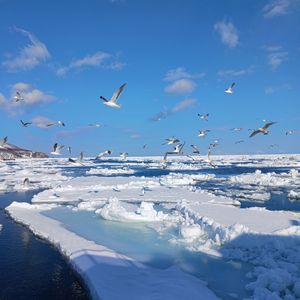 一面流氷に覆われた冬のオホーツク海を、流氷クルーズに乗って豪快に流氷を砕きながら、進んだ先に広がる幻想的な景色を見に行きませんか? 船上では、足元に伝わってくる振動とデッキから見える青空、そして白い流氷の展望は迫力満点です! また、氷の上にたたずむオオワシや愛くるしい姿のアザラシなどの動物を是非カメラに収めてみてください。