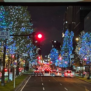 御堂筋のイルミネーションあたりから風がきになり、その後の高速道路が激寒でしたが、帰りは前の方に座らせていただき、助かりました。