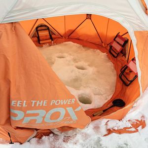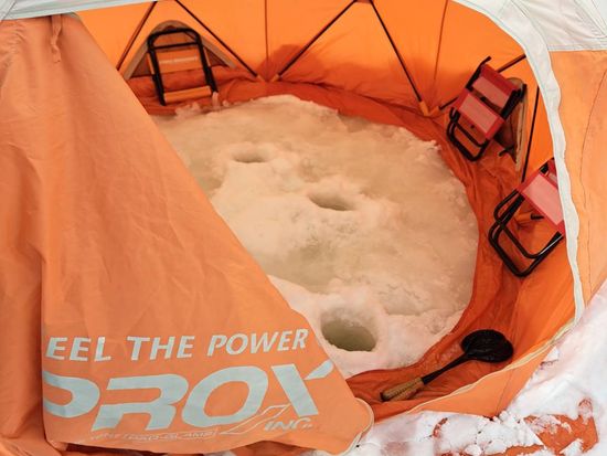 2月中旬に行きました。雪が降っていましたが、テントの中は暖かく、釣りに集中できました。