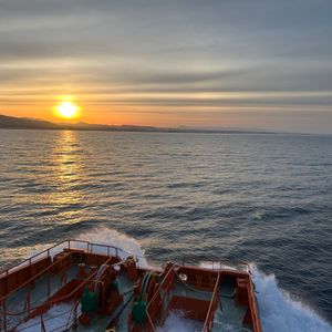 実際に船になって船の軌道を見ていると、沿岸をクネクネ走行していたので、まっすぐ沿岸の方に行けば流氷の方まで行くんじゃないの〜?連れていってほしいよ〜、見たいよ〜と思っていました。結局流氷は予報通り見ることはできませんでしたがサンセットは綺麗でしたし、オホーツク海の冷たい風を浴びて自然を感じることはできました。また、バスガイドさんが言っていた、クルーズ出航の際のお見送りしてくれる恒例のお爺さん(かに爪)が元気に踊ってらっしゃるのを見て、こちらも元気をいただきました。