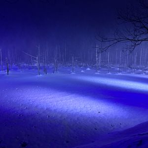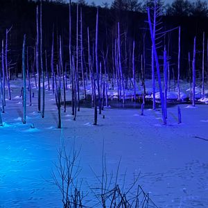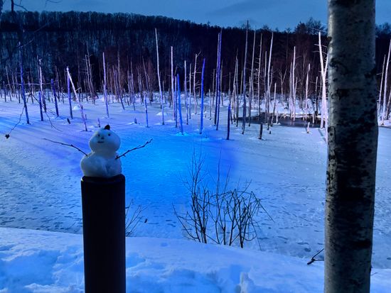 ライトアップされた雪でおおわれた青い池は幻想的でした。素敵な時間を過ごすことができました。今度は、夏の青い池を見たいです。