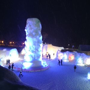 ライトアップされたブルーの氷のモニュメントや、マシュマロを焼ける焚き火コーナーなど、見所いっぱいでした。